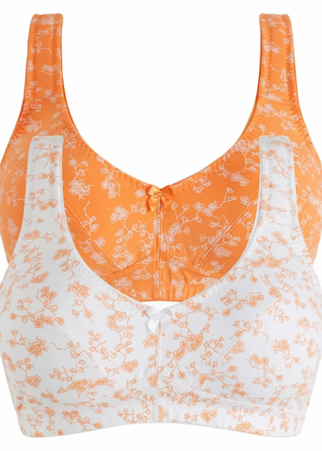 Der BH ohne Bügel bietet mit seiner schönen Bio-Baumwollqualität angenehmen Tragekomfort. Das weiche Material schmiegt sich perfekt an und die leicht gepolsterten Träger entlasten die Schulterpartie.Im attraktiven Doppelpack sind zwei BHs ohne Bügel aus der bpc collection mit einem verspielten Blumendruck enthalten. Dieser ansprechende BH vereint bequemes Tragegefühl und modisches Design.