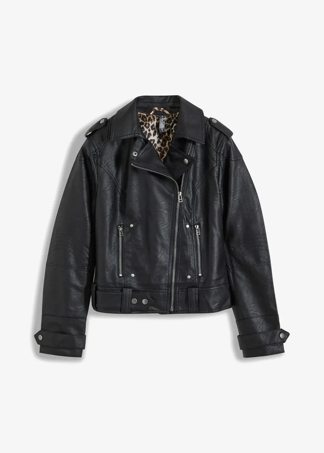 Lässige Jacke aus Lederimitat mit Innenfutter im Leomuster