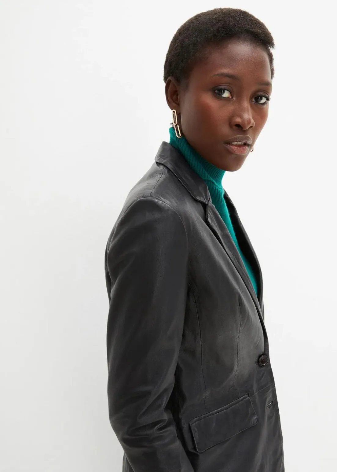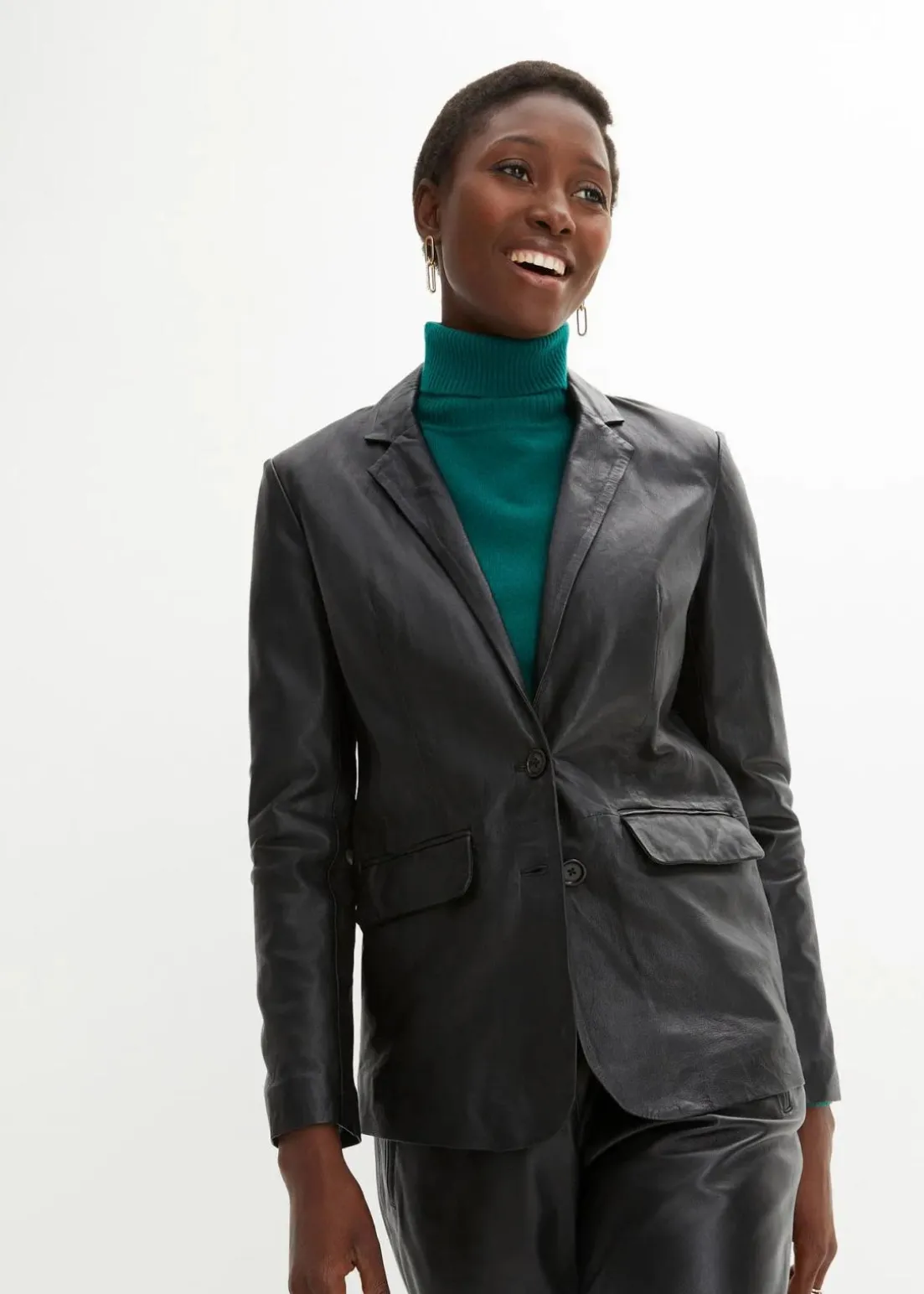 Modischer Lederblazer aus Lammnappa mit Pattentaschen, vielseitig kombinierbar.