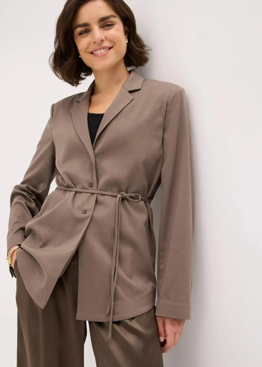 Locker fallender Blazer mit Reverkragen und Bindegürtel