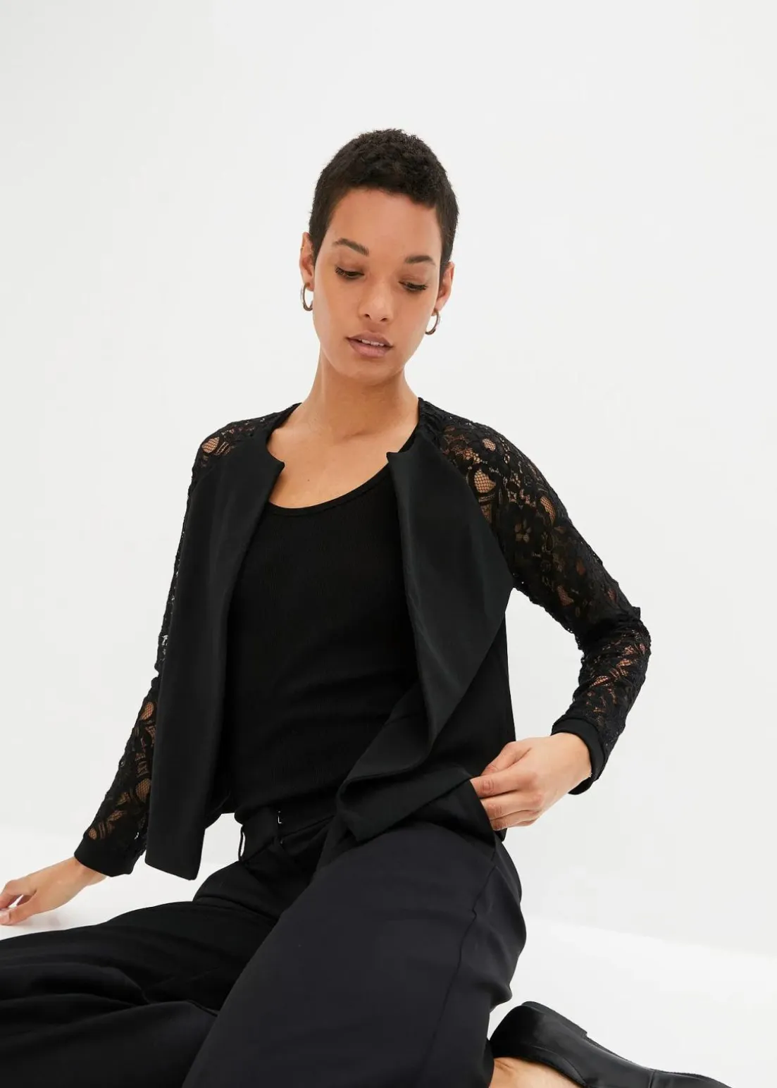 Schicke Rundhals-Jacke mit langen Ärmeln aus Spitze