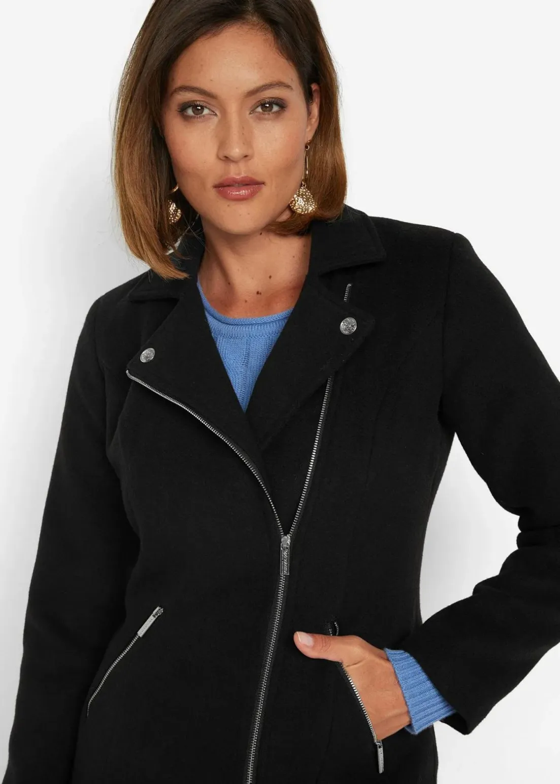 Blazermantel mit asymmetrischem Reißverschluss