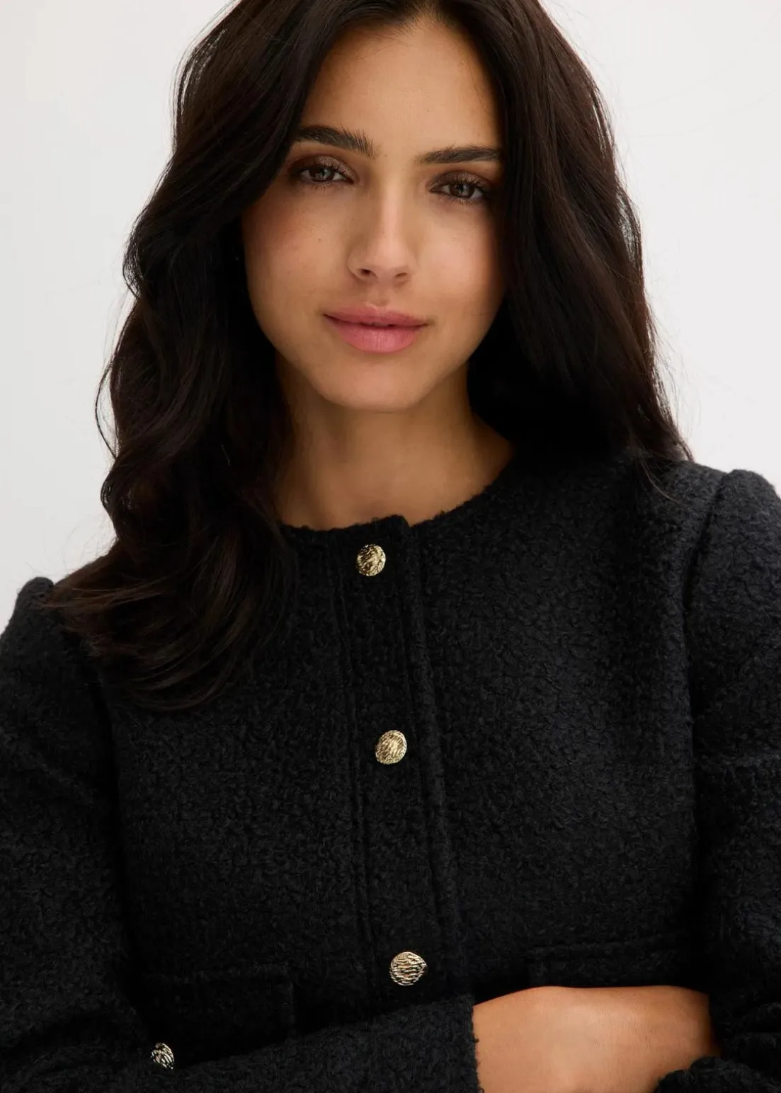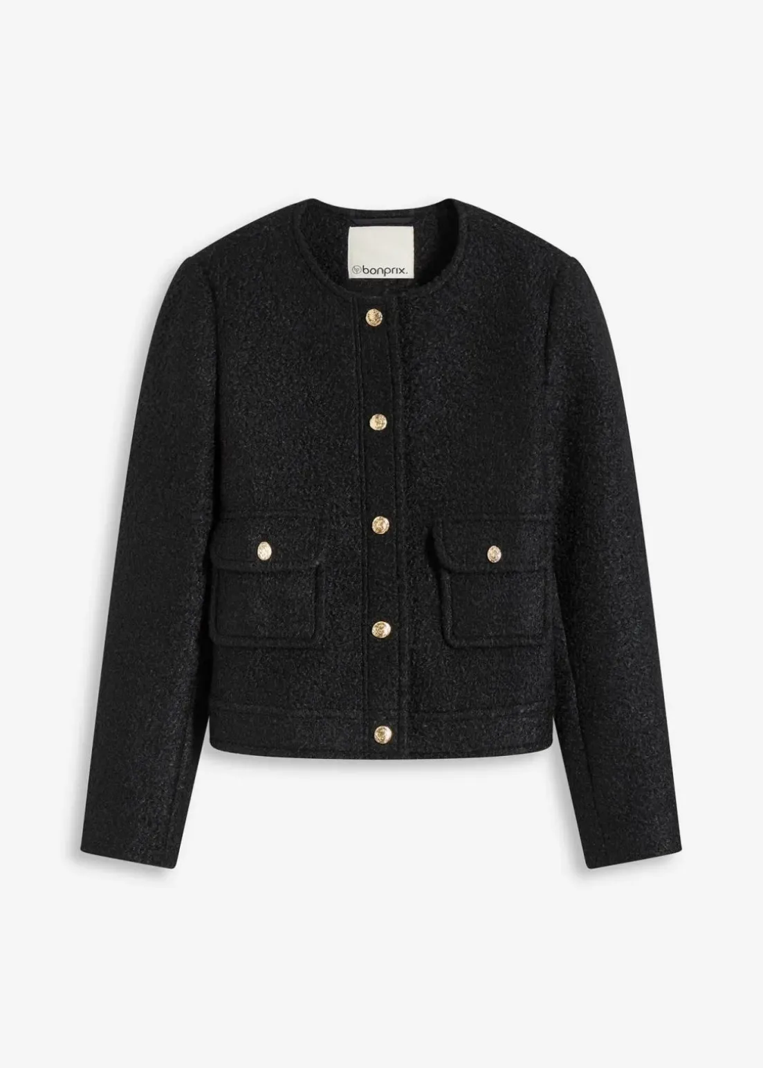 Kurzer Blouson aus strukturiertem Bouclé mit aufgesetzten Taschen