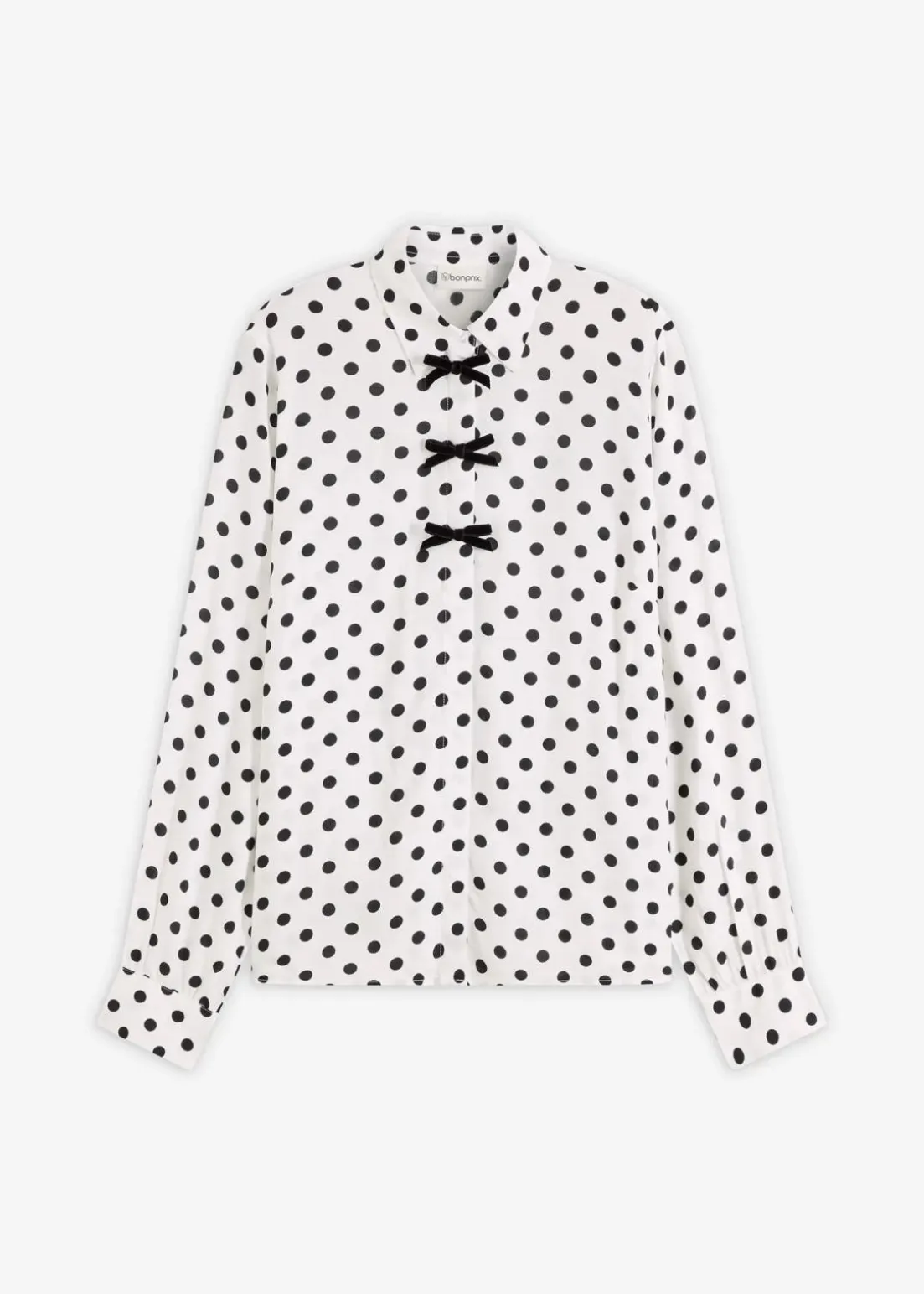 bedruckte Bluse aus fließender Viskose mit dekorativen Schleifen vorne