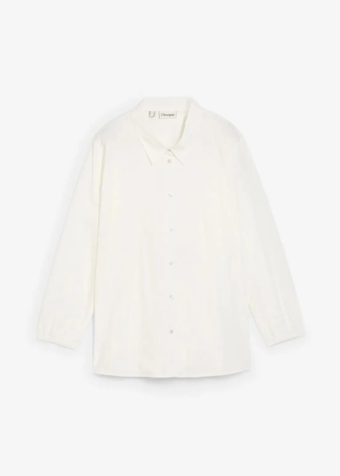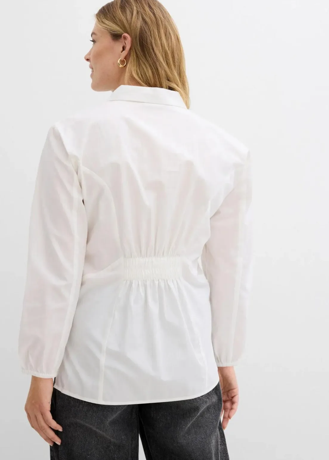Langärmlige Baumwollbluse mit Elastikeinsatz am Rücken sowie elastischem Ärmelabschluss.