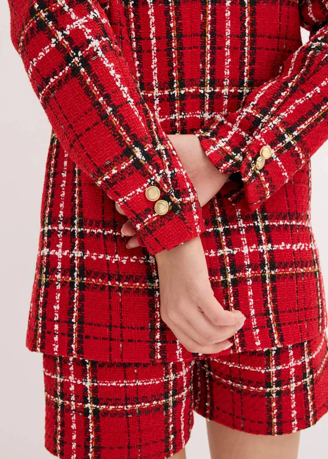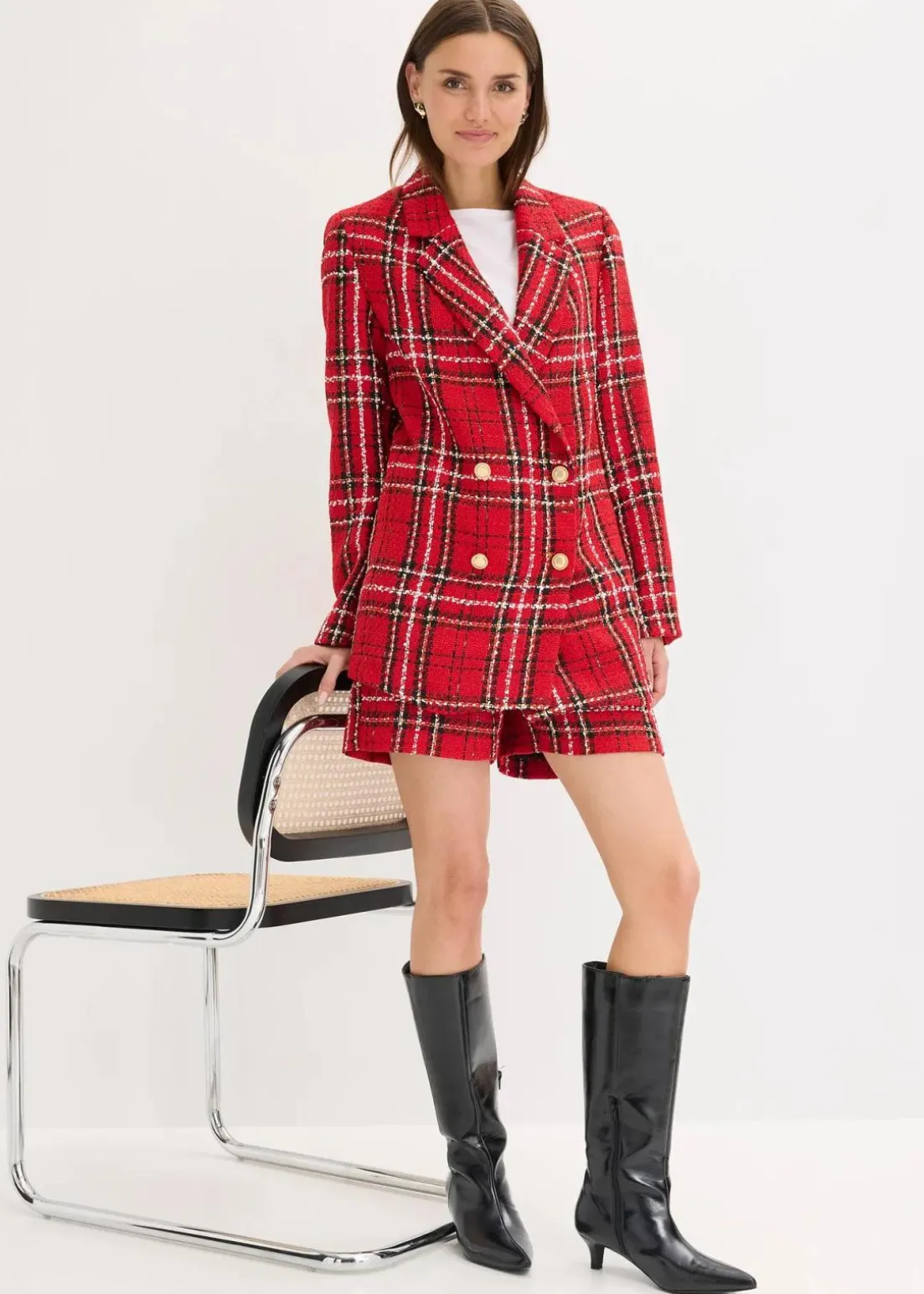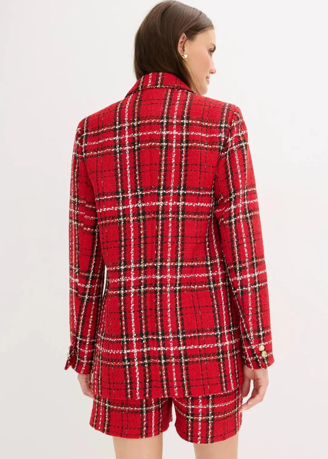 modischer Bouclé-Longblazer mit dekorativen Knöpfen