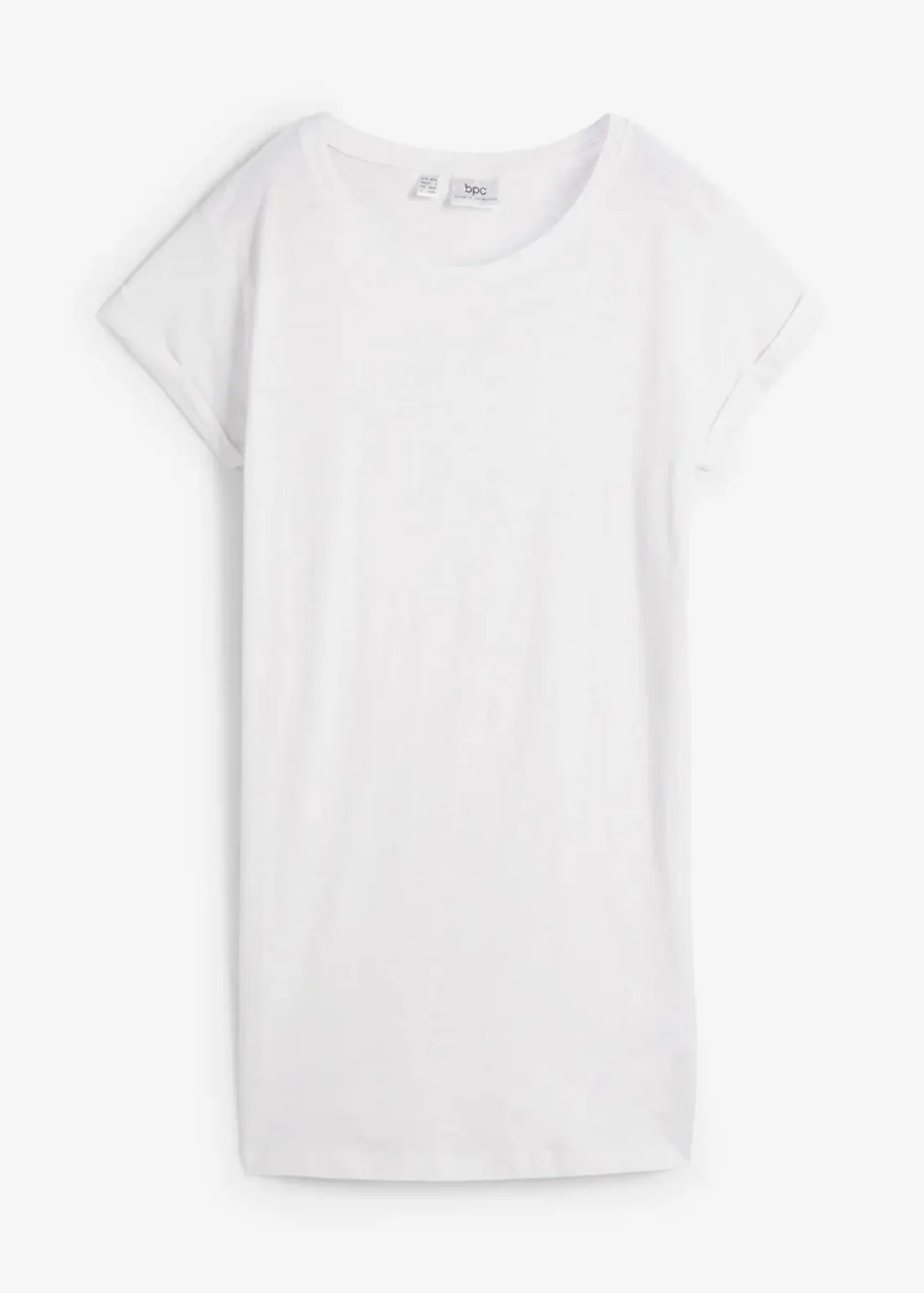 Dieses tolle Boxy-Longshirt der Marke bpc eignet sich für die Zusammenstellung verschiedener Freizeit-Outfits. Der runde Halsausschnitt ist mit feiner Rippware abgesetzt und die kurzen Ärmel sind mit einem Umschlagsaum versehen. Der länger geschnittene Saum umspielt locker die Figur.Das Boxy-Shirt sieht in Kombination mit Leggings oder schmal geschnittenen Hosen gut aus.
