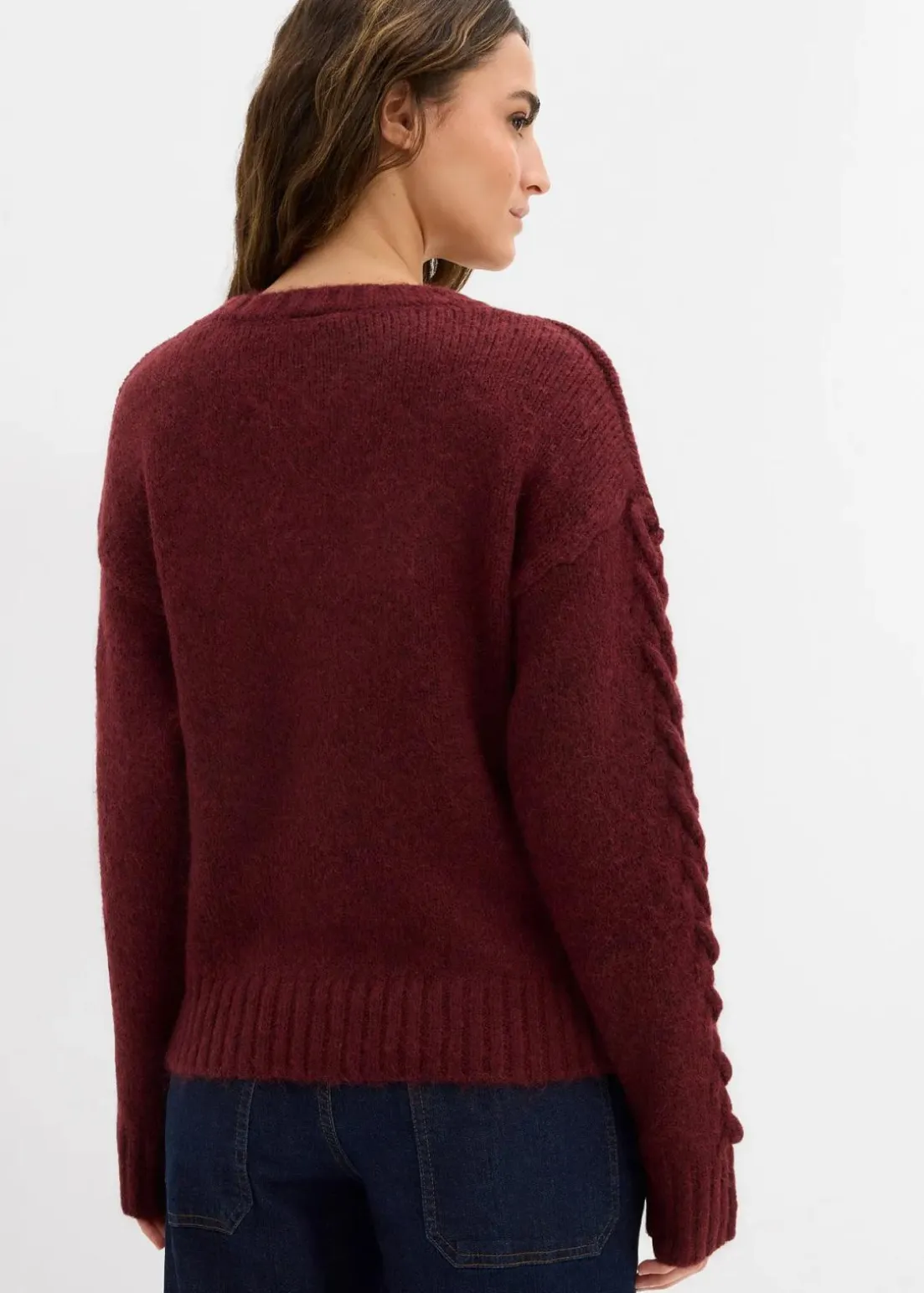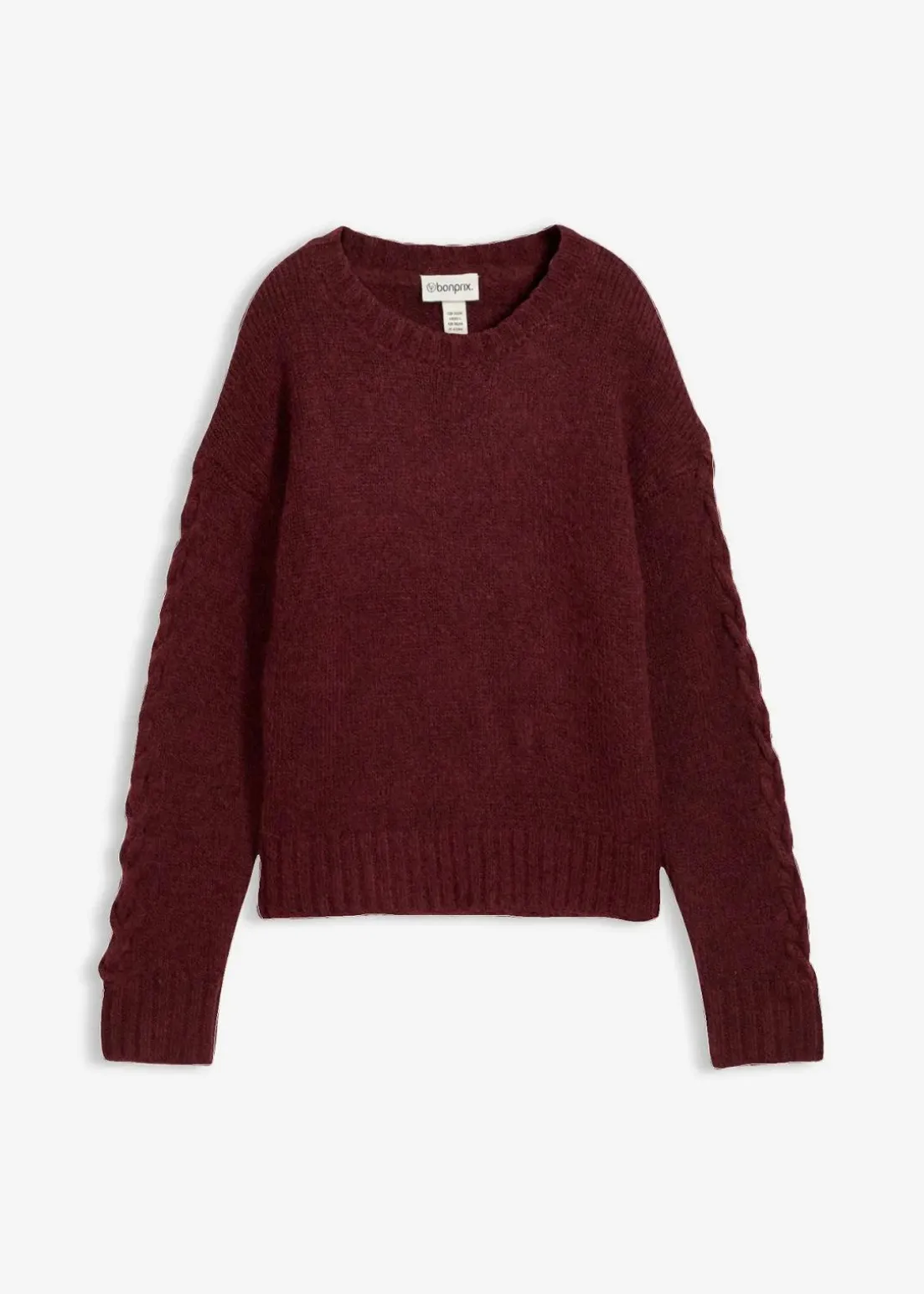 Modischer Boxy-Pullover mit geflochtenen Ärmeln und Rundhalsausschnitt