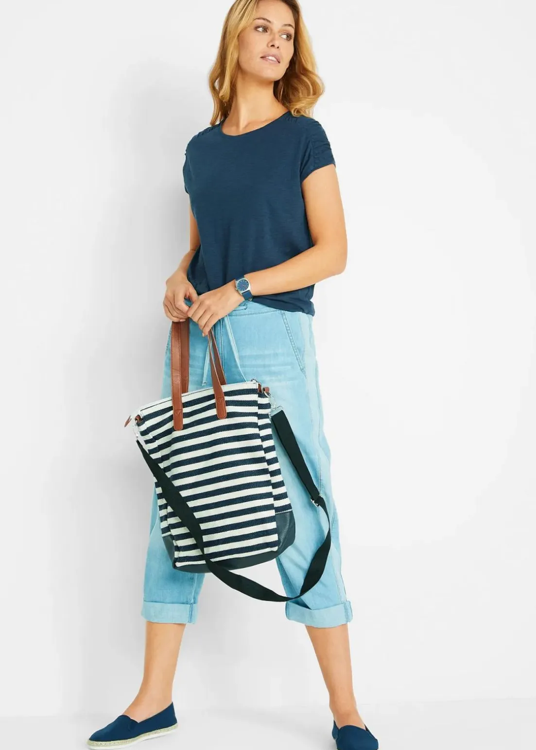 Baumwoll-Shirt mit Rundhals-Ausschnitt und überschnittenen Schultern, Loose Fit