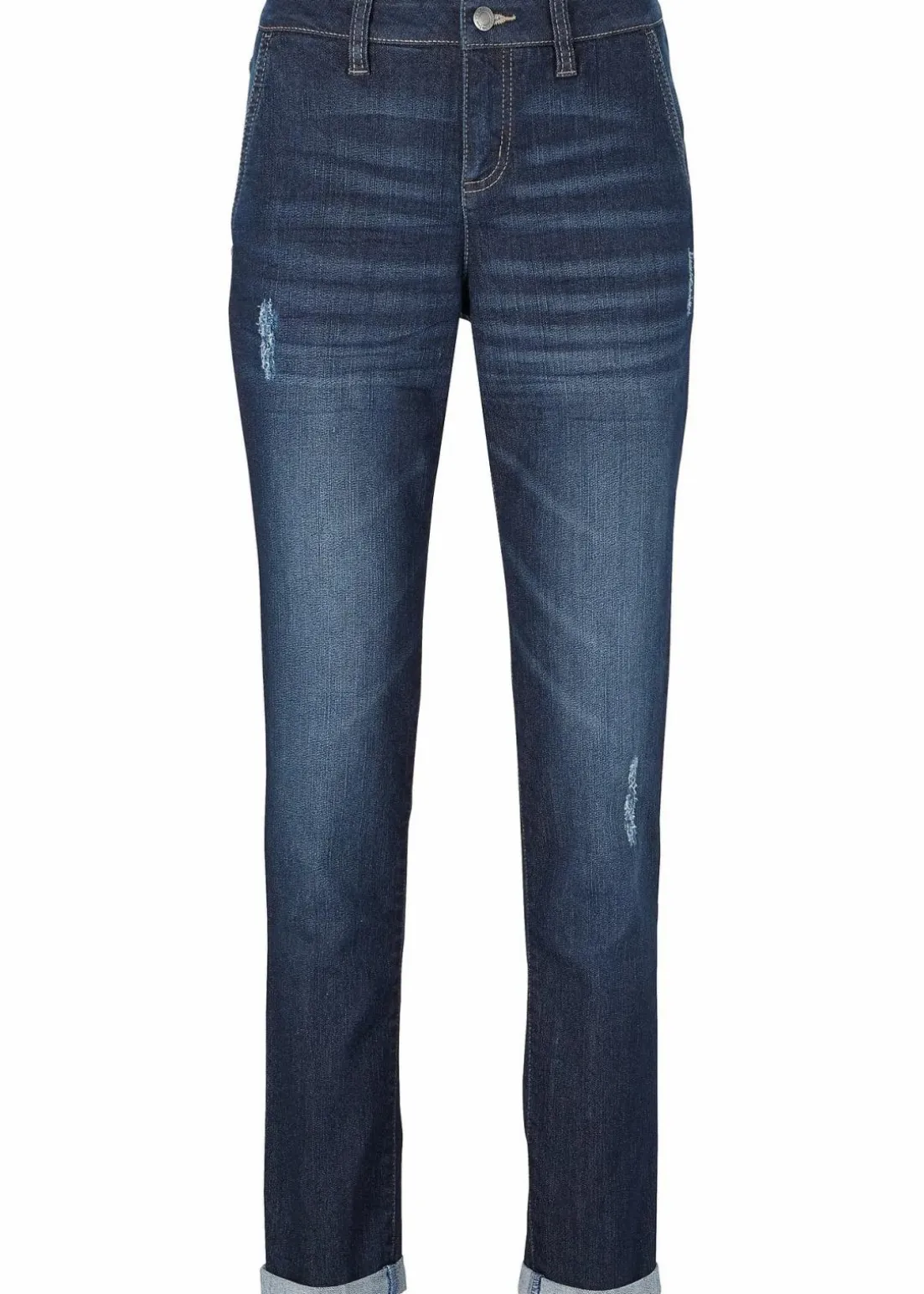 Mit dieser Boyfriend-Jeans der Marke John Baner geht es lässig durch die Freizeit. Der lockere Schnitt und der Stretch-Anteil sorgen dabei für ein gutes Tragegefühl.Optisch begeistert die Stretch-Jeans BOYFRIEND mit angesagten Used-Effekten, permanenten Falten und der schönen Waschung. Weitere Merkmale sind die beiden vorderen Eingrifftaschen und die zwei aufgesetzten Taschen hinten.