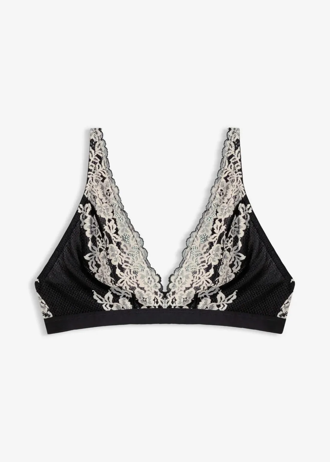 Bralette aus zweifarbiger Spitze mit recyceltem Polyamid.