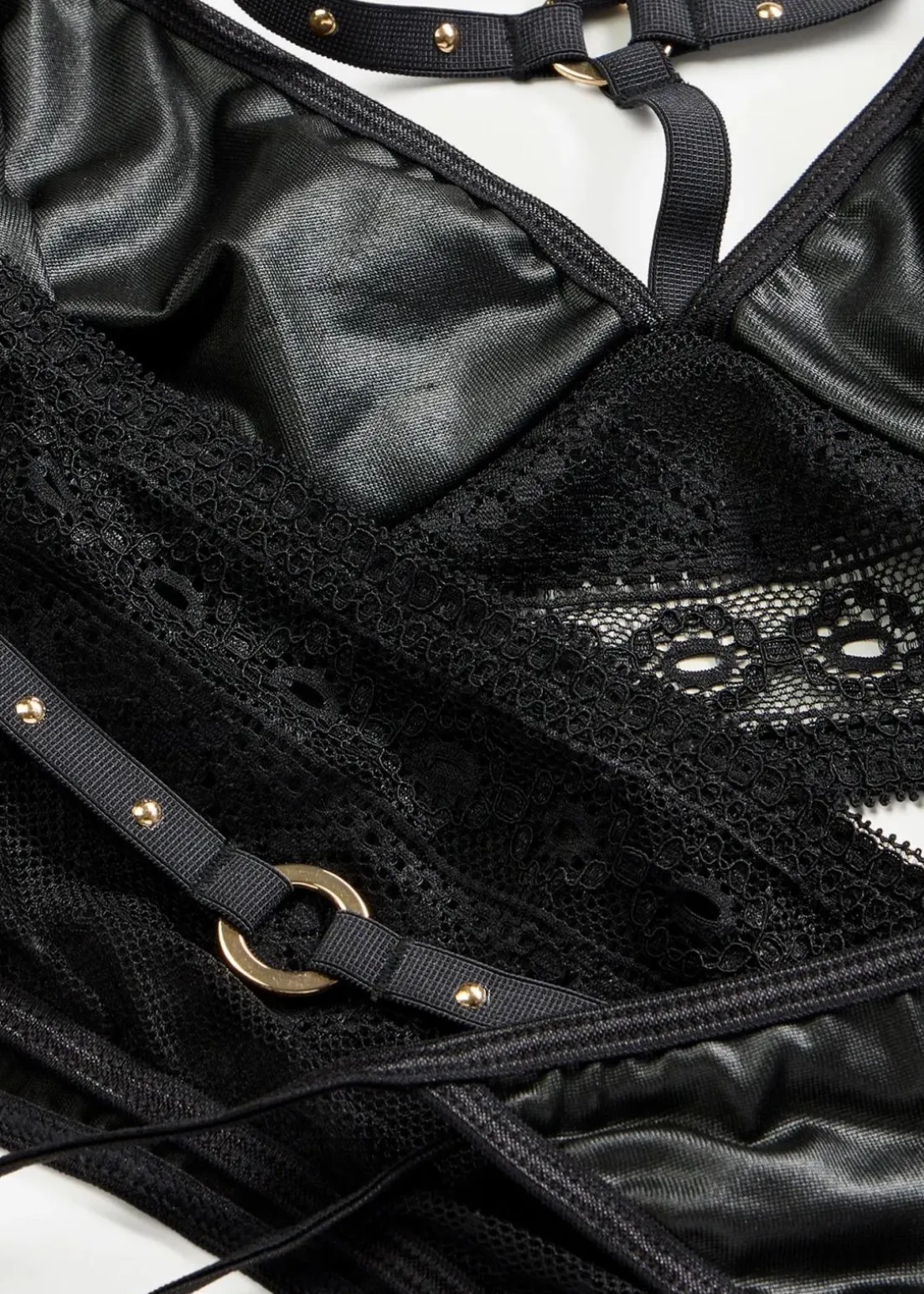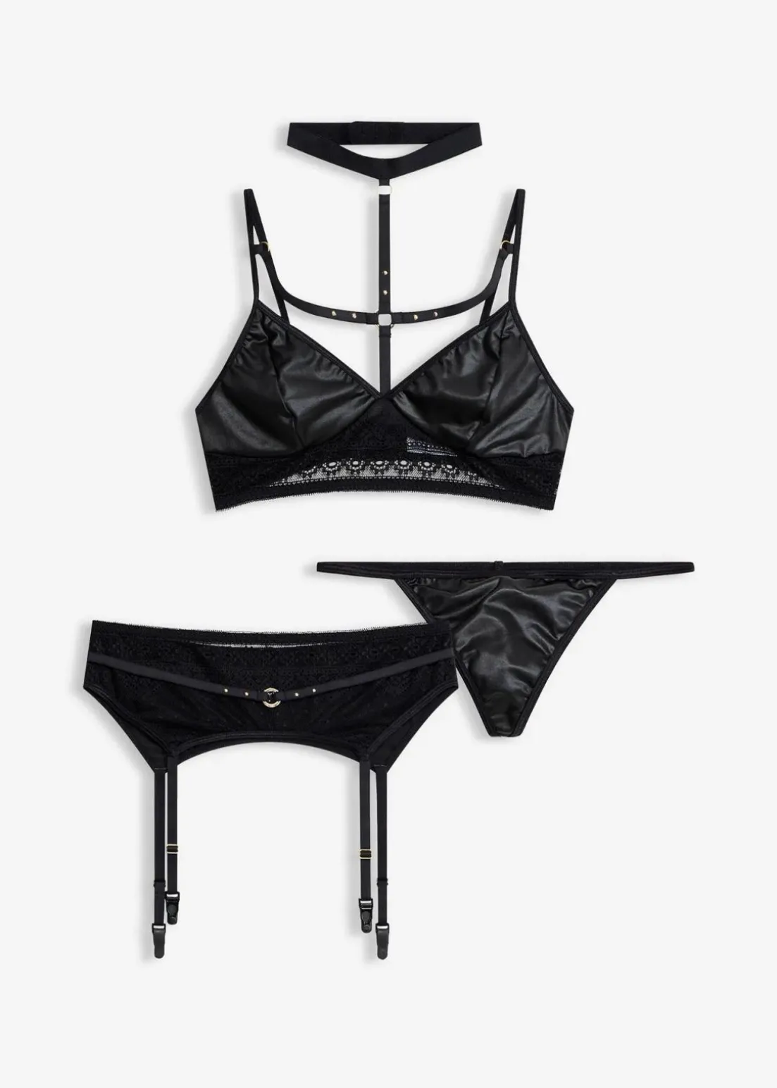 Dieses sexy Set wird Ihre Lust noch weiter steigern. Die glänzenden Einsätze wirken erotisch – aufregende Details zieren das Set noch weiter. Kombiniert mit heißen Strapsstrümpfen aus dem bonprix Sortiment werden Sie die Blicke auf sich ziehen.