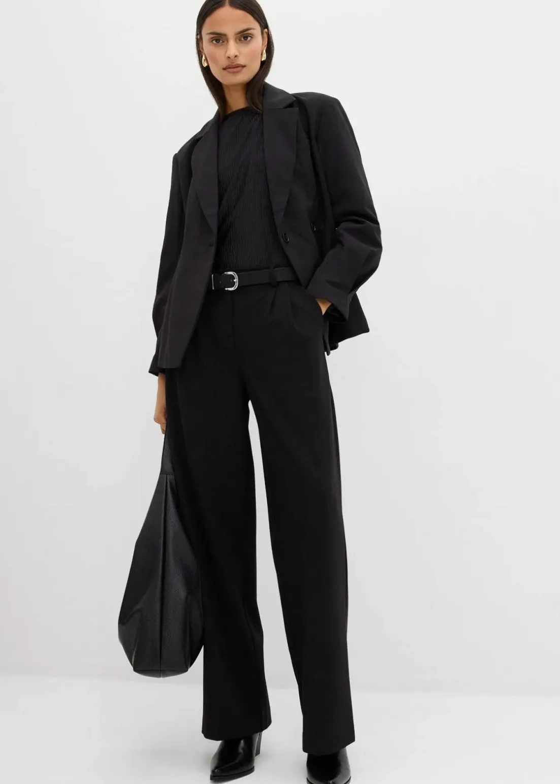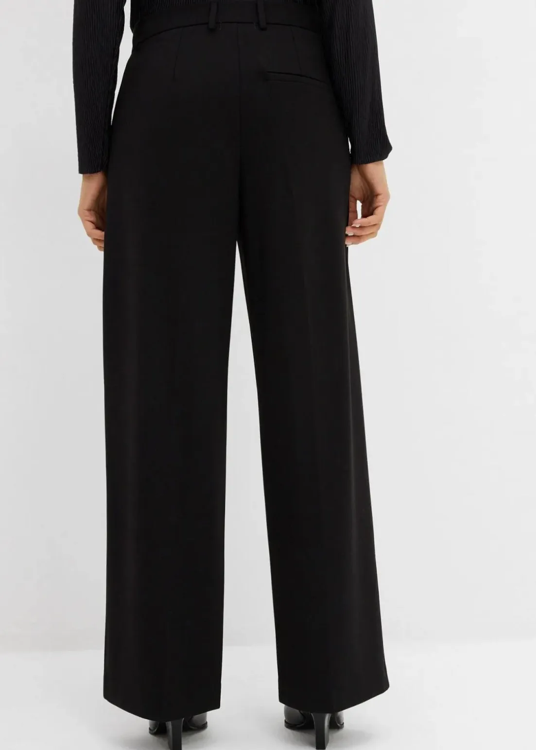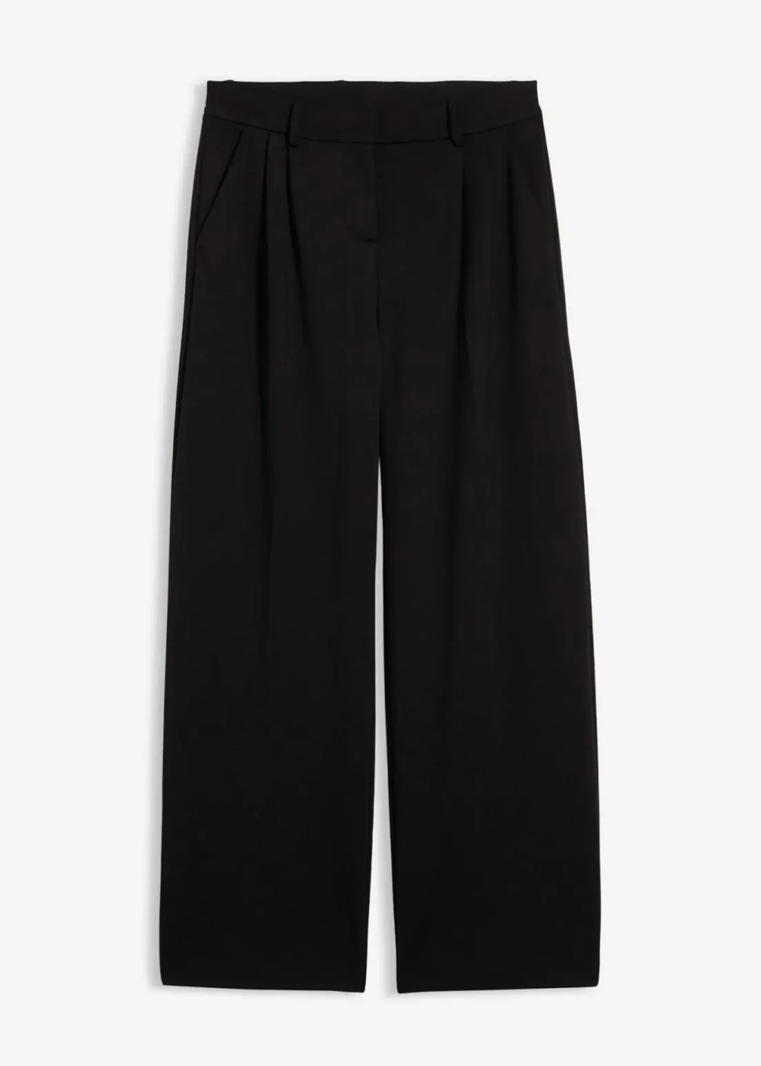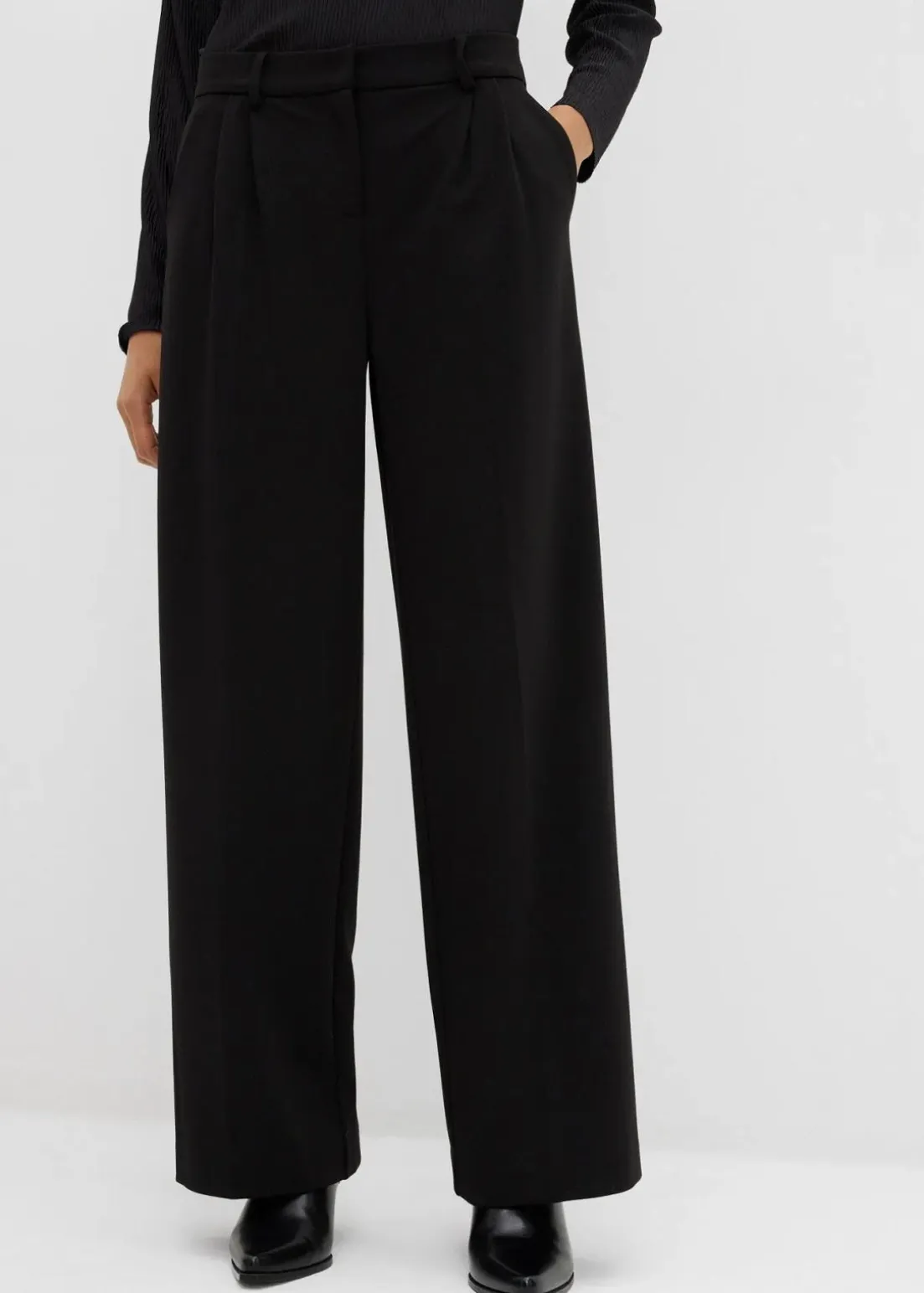 Lockere Hose mit weitem Bein und markanten Bügelfalten an der Vorderseite. Mit Haken- und Riegelverschluss sowie Reißverschluss