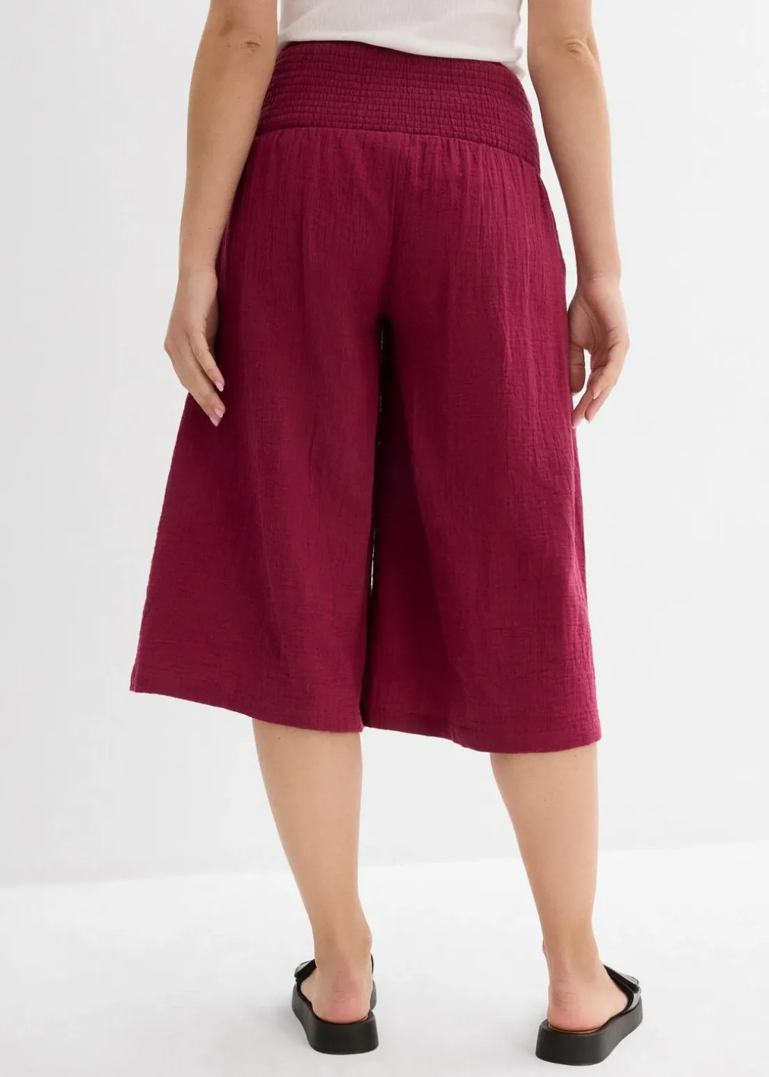 Capri-Hose mit breitem Gummibund und seitlichen Eingriffstaschen aus reiner Baumwolle
