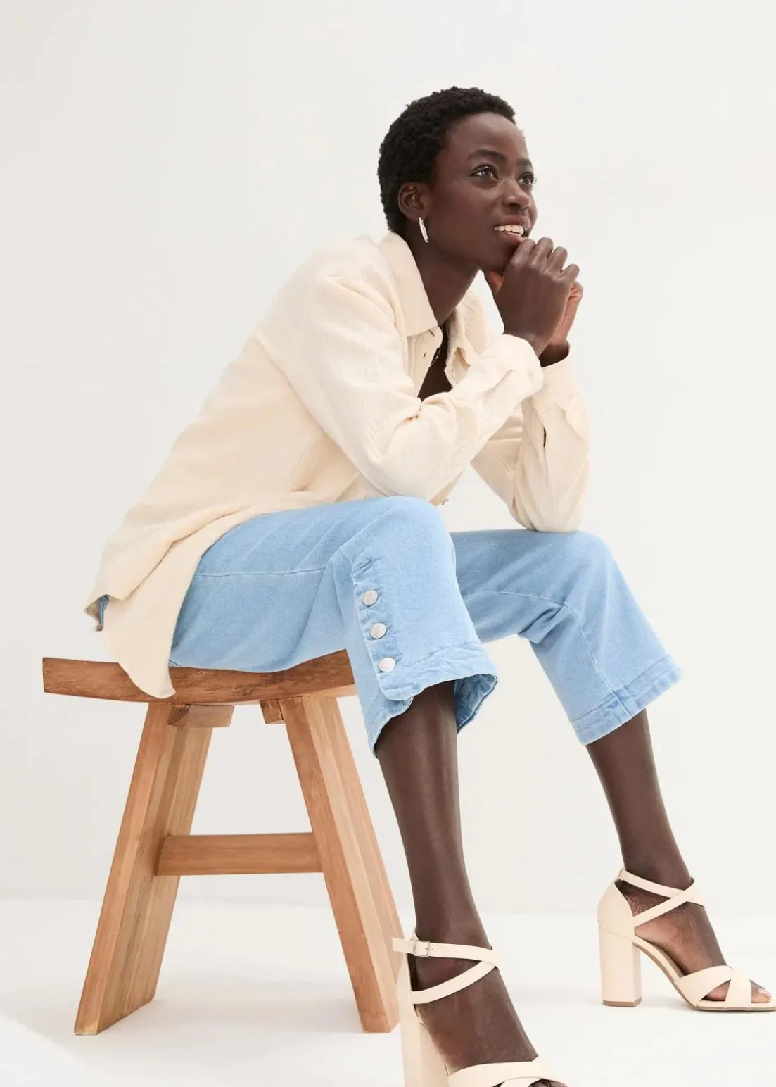 Stilvolle Bluejeans mit geschlitztem 3/4-Bein