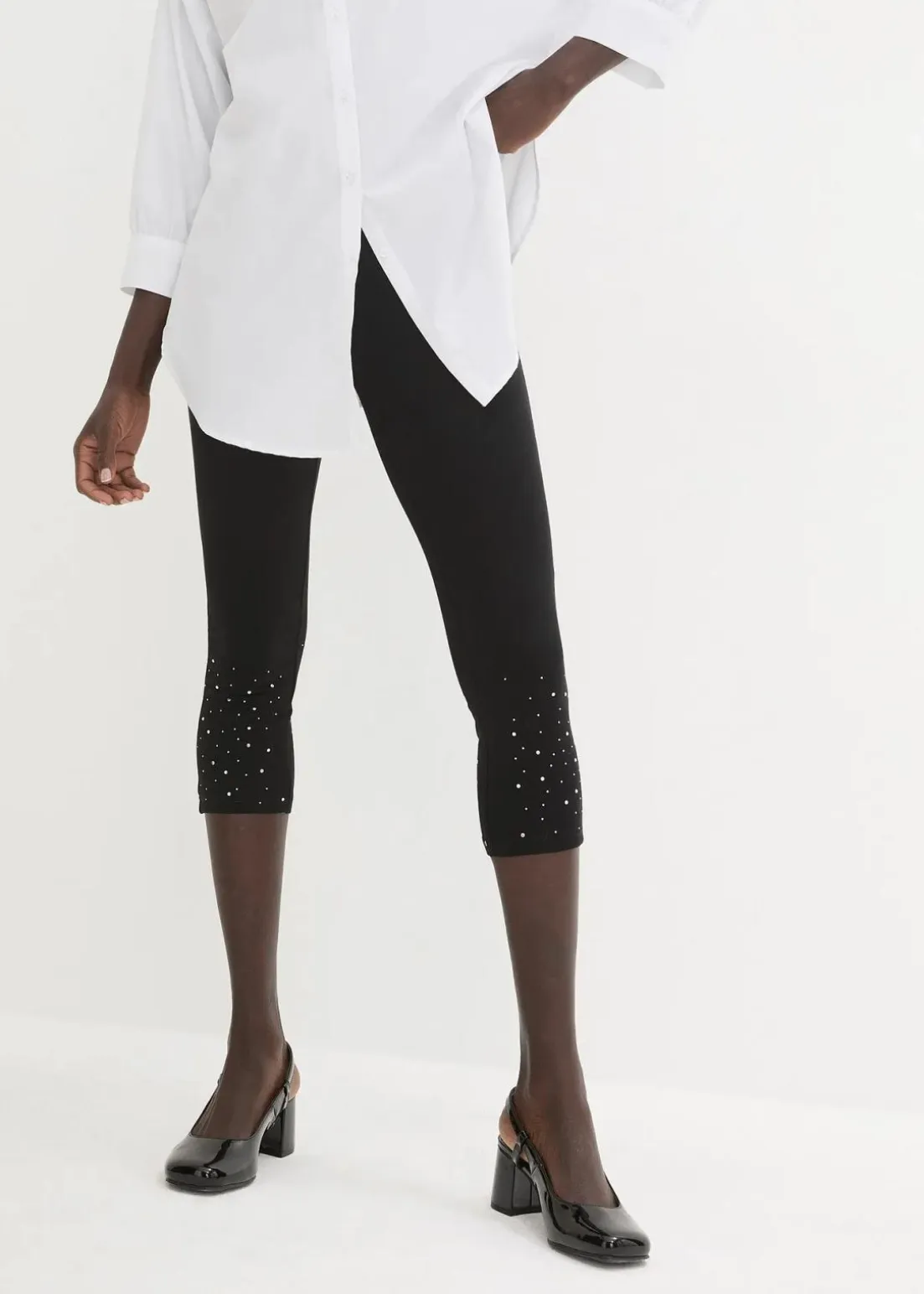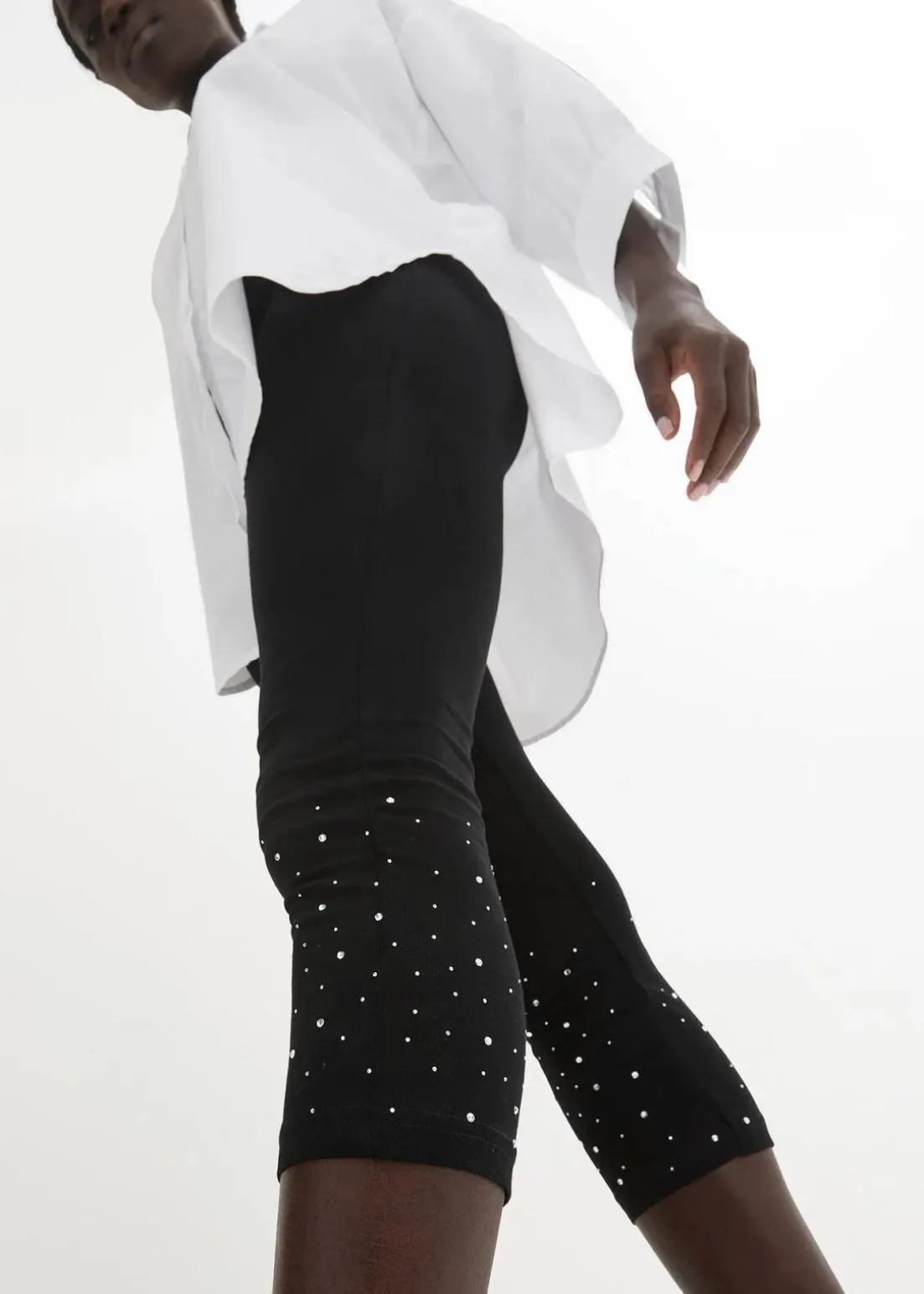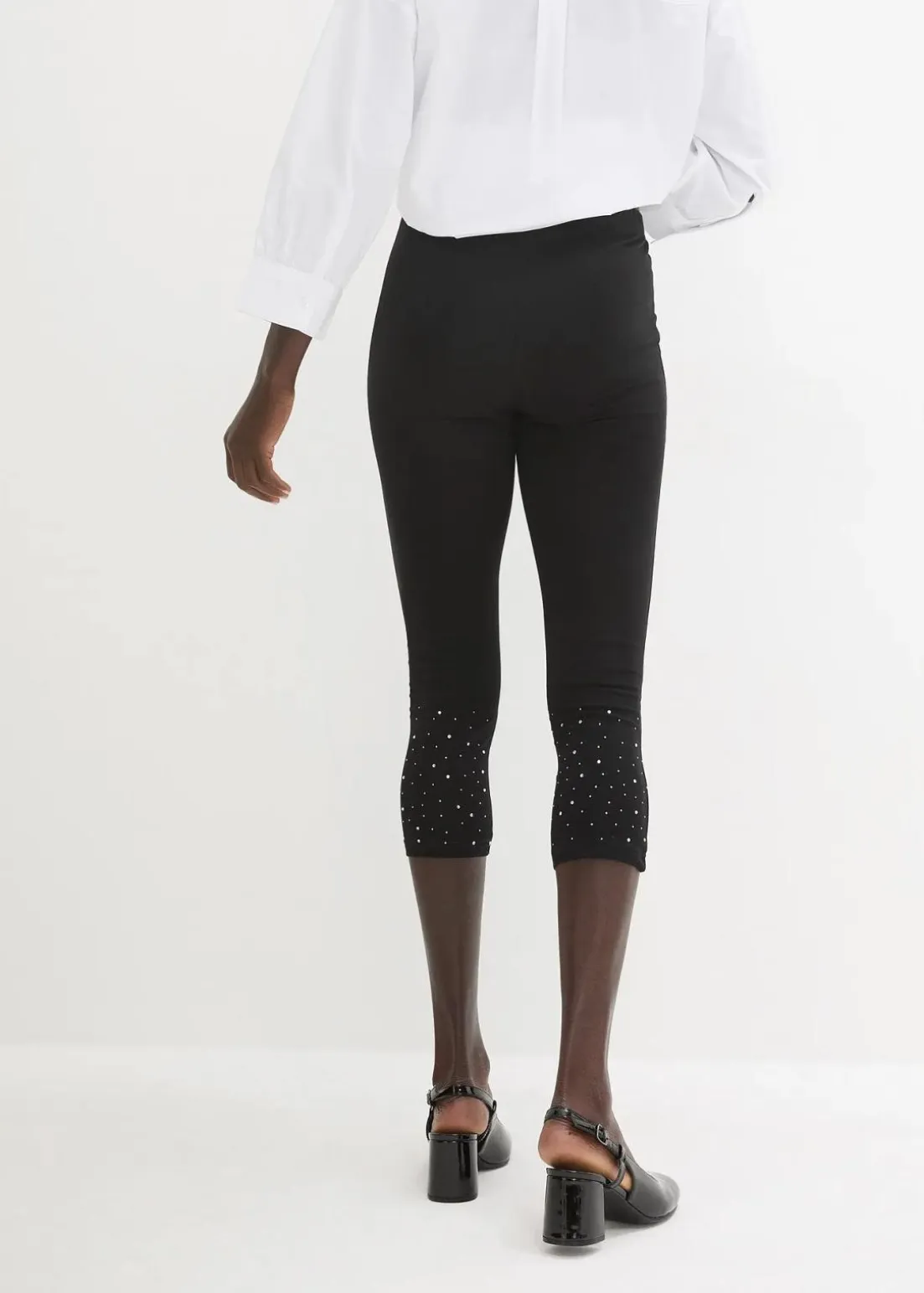 Attraktive 3/4-Leggings mit glitzernden Schmucksteinen