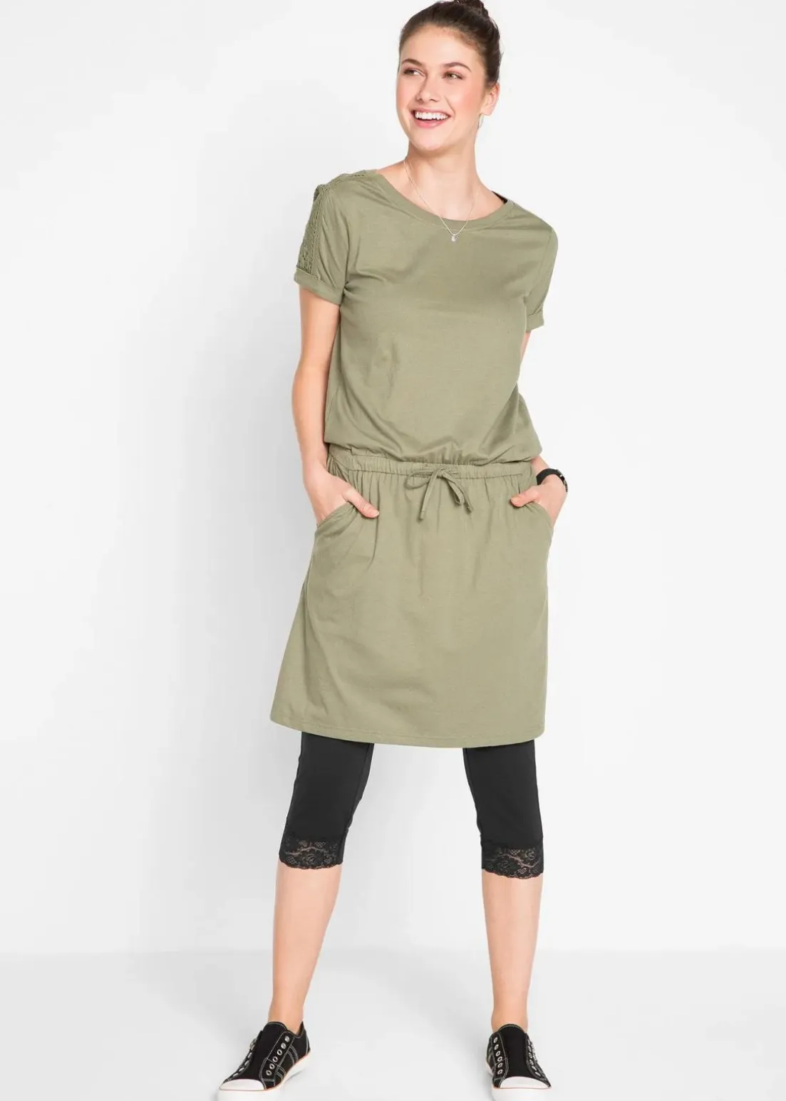3/4-lange Leggings mit Spitze und Elastikbund