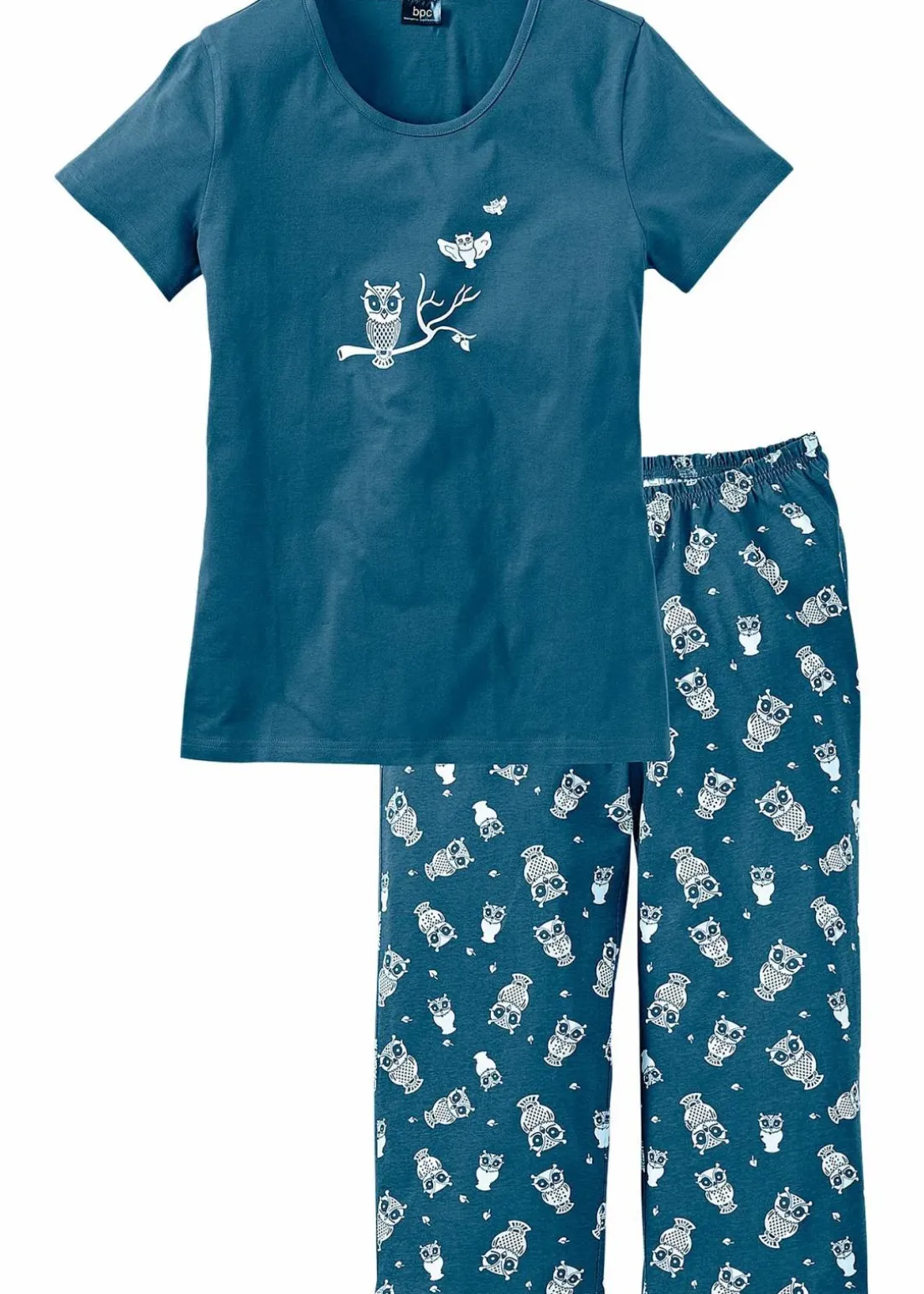 Zu einem entspannten Schlaf gehört ein Outfit mit Wohlfühlfaktor. Dieser lässige Capri-Pyjama von bpc verspricht viel Bewegungsfreiheit und überzeugt gleichzeitig durch eine niedliche und modische Optik. Der bezaubernde Eulendruck auf der Caprihose sowie dem kurzärmeligen Shirt ist topaktuell und macht einfach gute Laune.Der Pyjama ist in verschiedenen tollen Farben erhältlich.