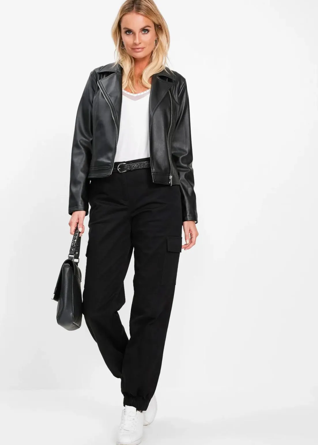 Diese lässige Cargo-Hose ist besonders bequem aufgrund des Anteils an Elasthan und des Bequembundes. Der lässige Schnitt der Hose trägt ebenso zur bequemlichkeit bei. Die moderne Cargo-Hose ist vielseitig zu kombinieren. Ein klassischer Rollkragenshirt, einem legeren Shirt oder einem modischen Print-Shirt von bpc Selection passen perfekt zu der schlichten Farbe der lässigen Cargo-Hose. Feminine Pumps oder flache Schuhe runden das Outfit mit zarten Schmuck und einer modischen Tasche ab.
