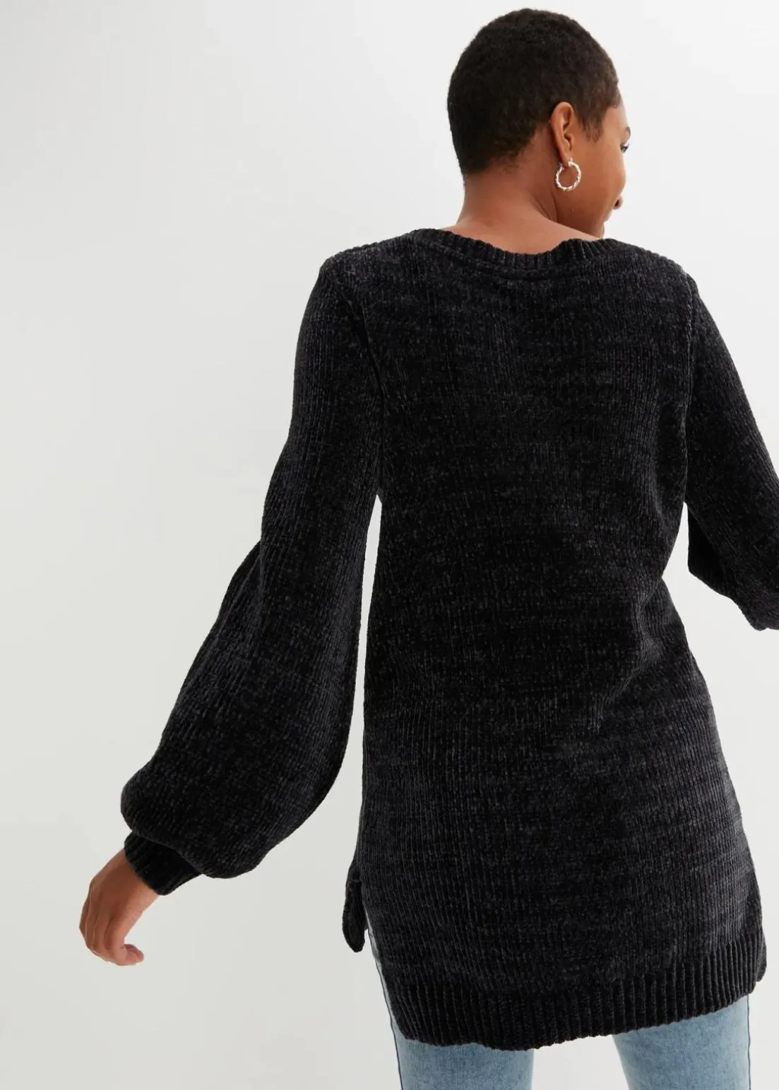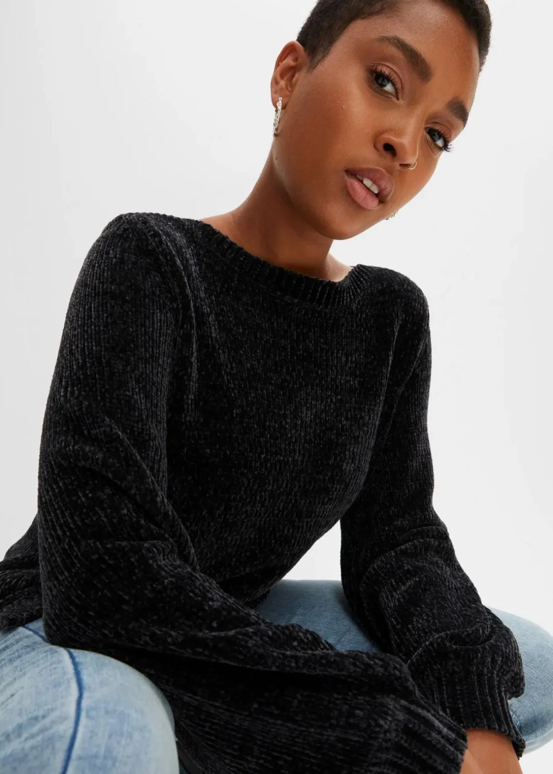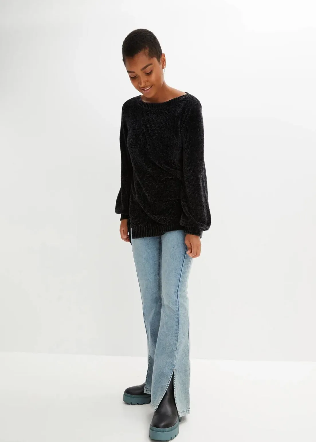 Samtiger Chenille-Pullover mit seitlichen Schlitzen