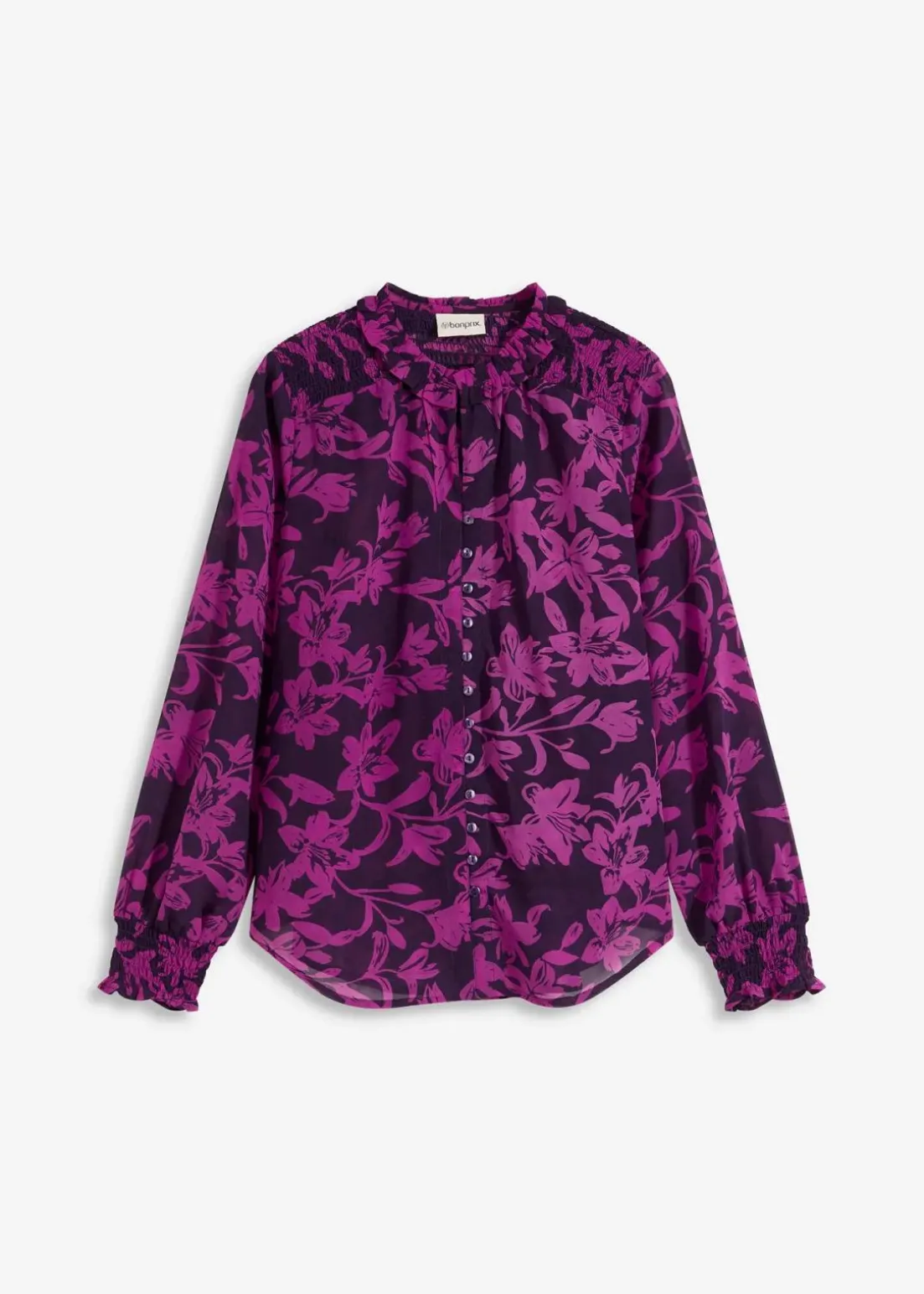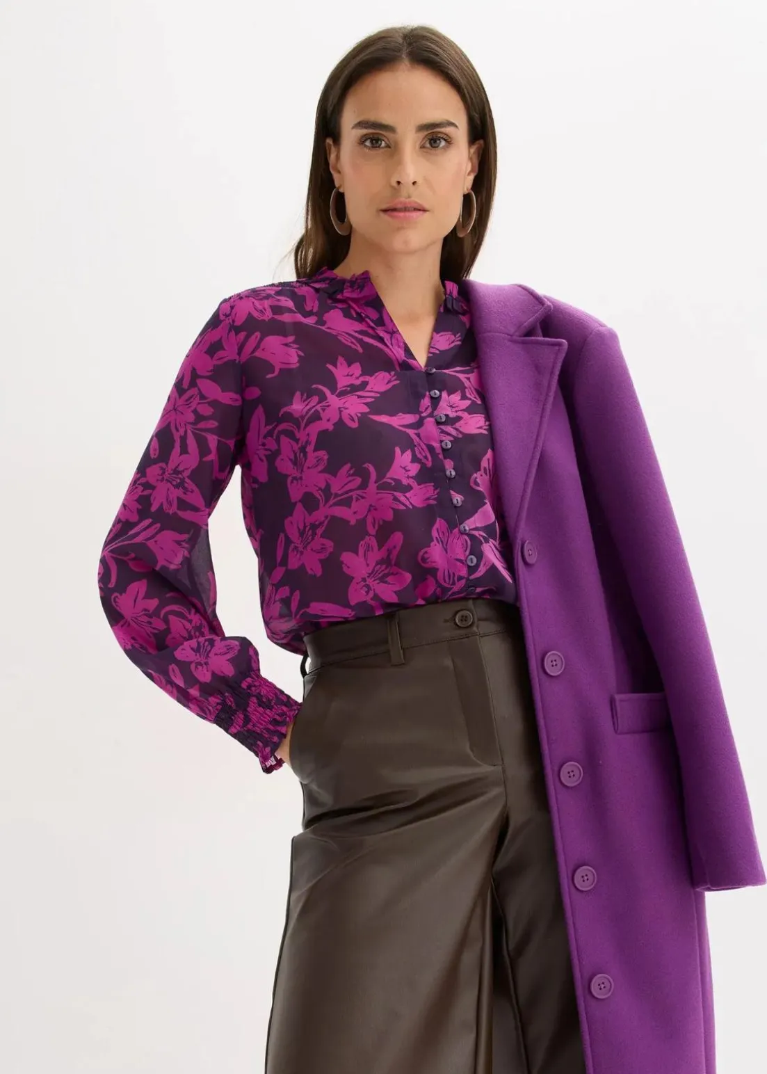 Leicht Taillierte Bluse mit kleinem Stehkragen und 3/4-Ärmeln