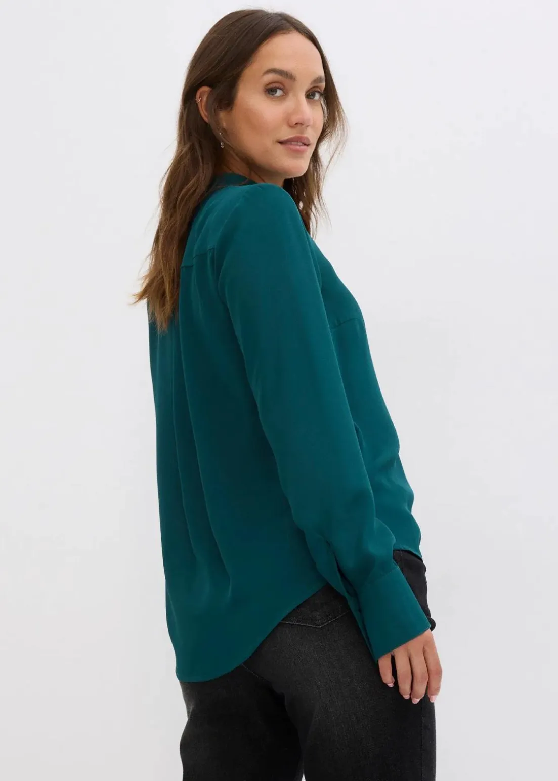 modische Chiffonbluse mit V-Ausschnitt und Seitenschlitzen