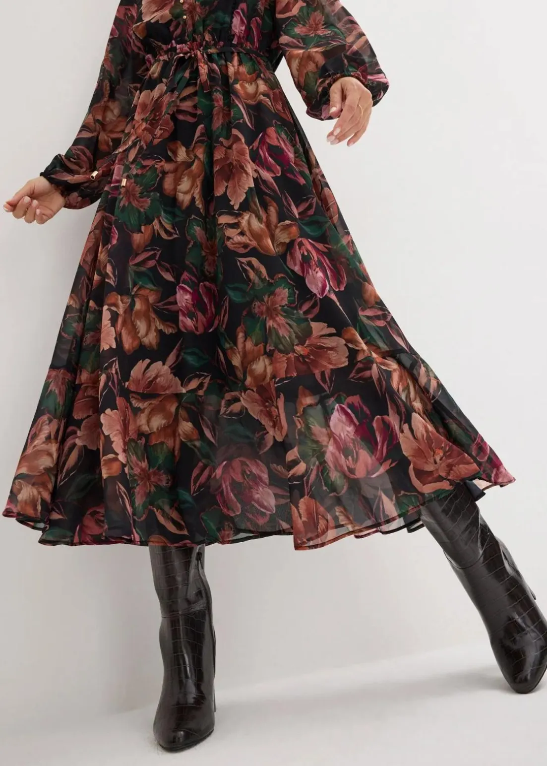 edles Chiffon Kleid im Blüten-Design