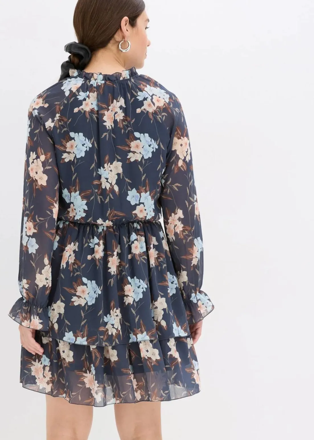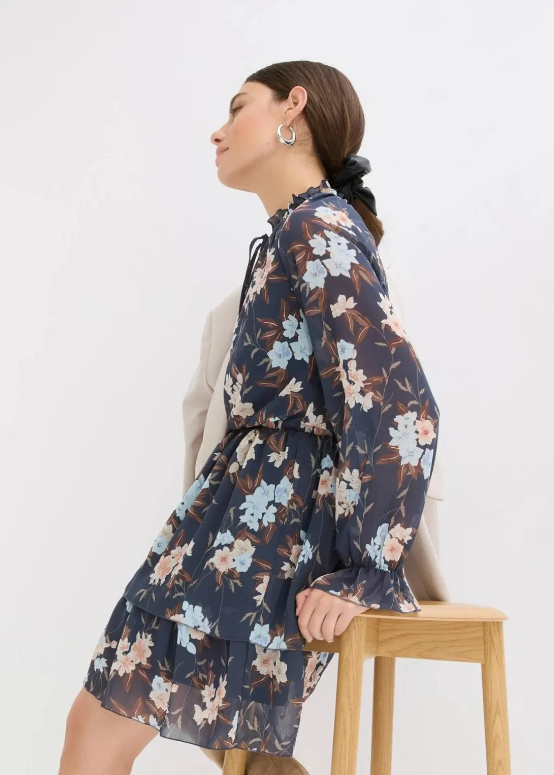 Kurzes Volantkleid mit Rüschen am Auschnitt und Ärmel