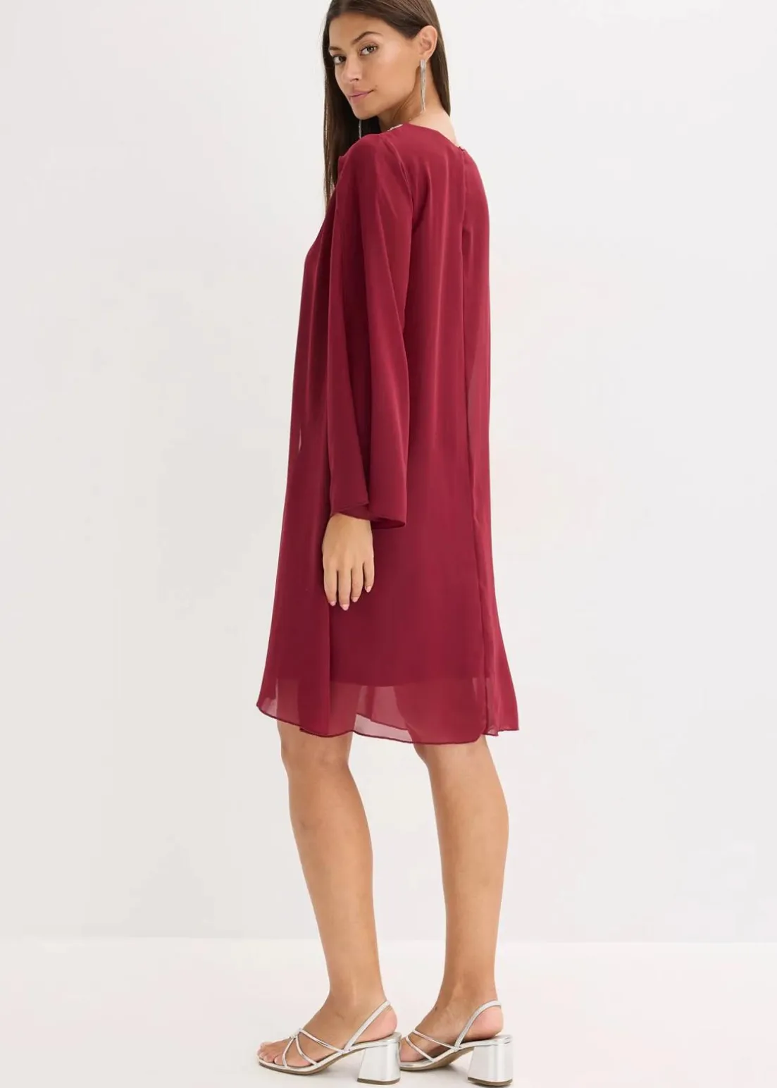 Kleid mit Strasssteinapplikation aus feinem Chiffon mit Überlappung