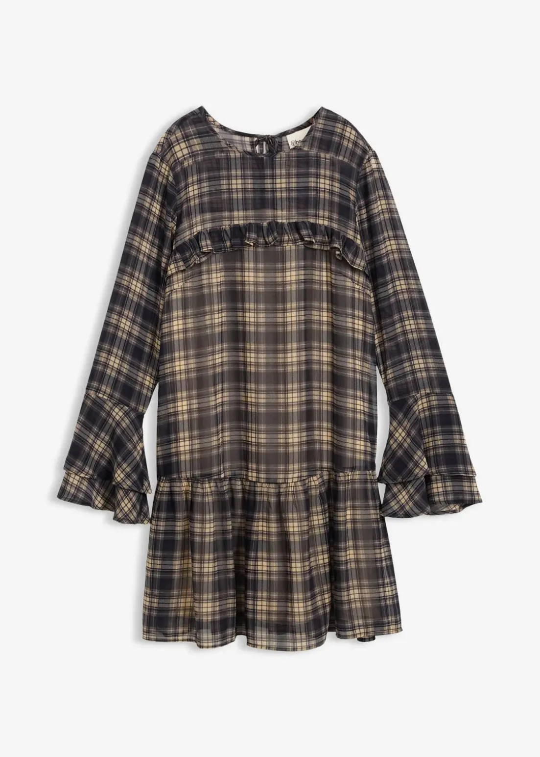 Modisches Chiffonkleid mit Volants und langen Ärmeln