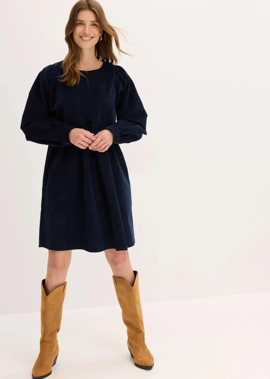 Weit fallendes Kleid aus Cord mit Volumenärmeln