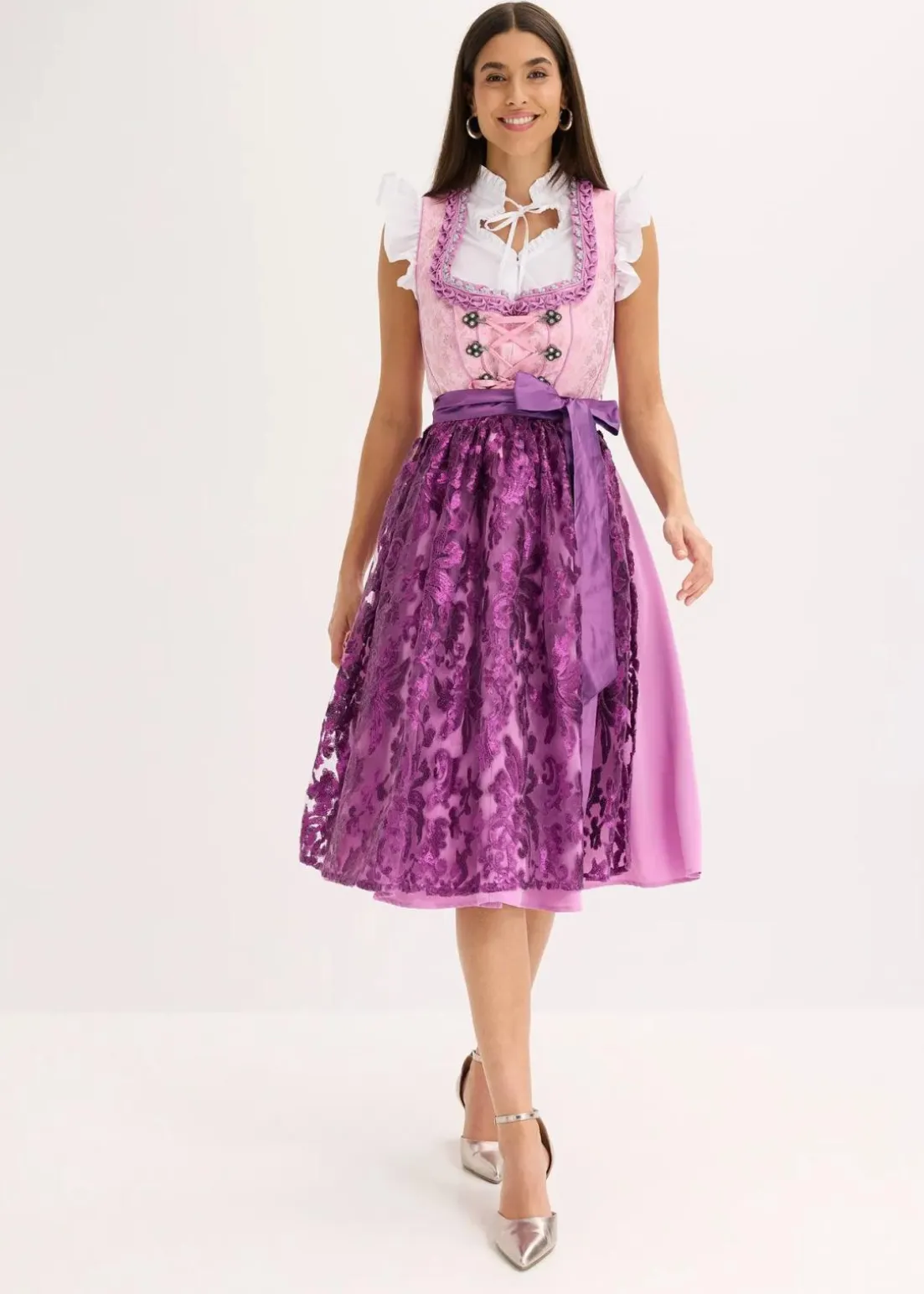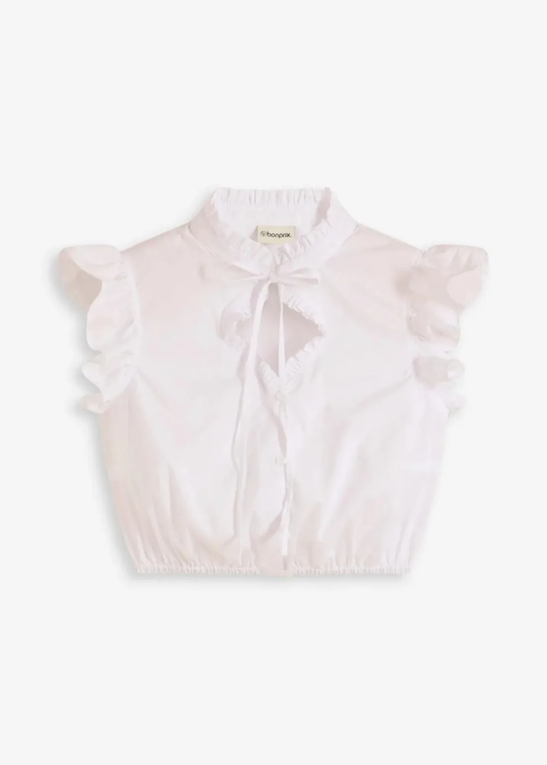 Modern und feminin: Dirndlbluse mit Rüschen und Stehkragen mit Binde-Detail