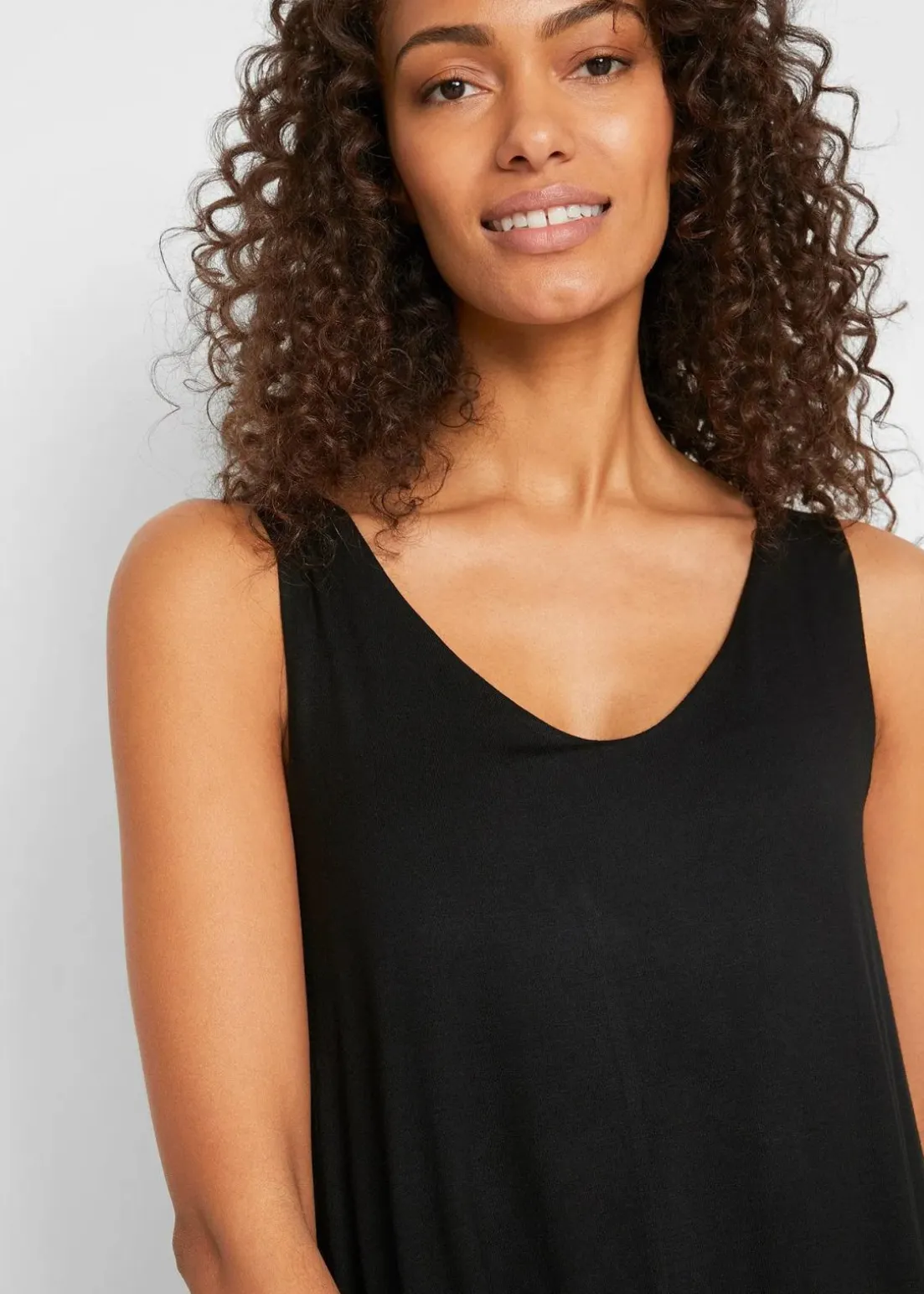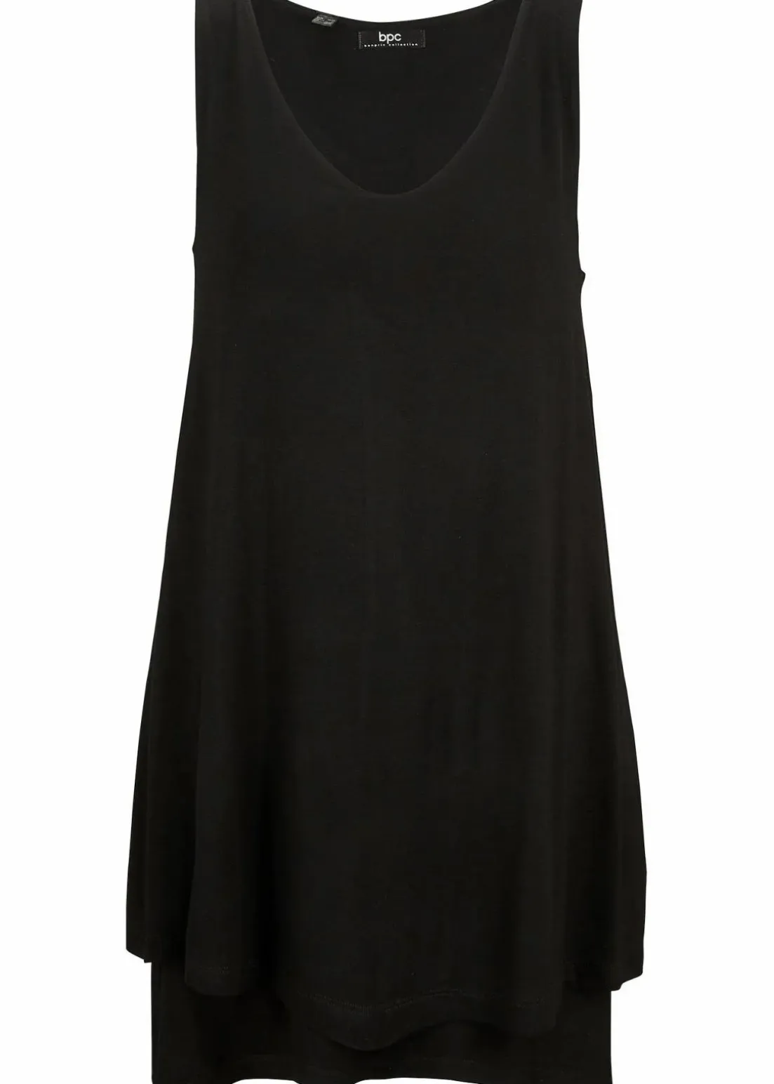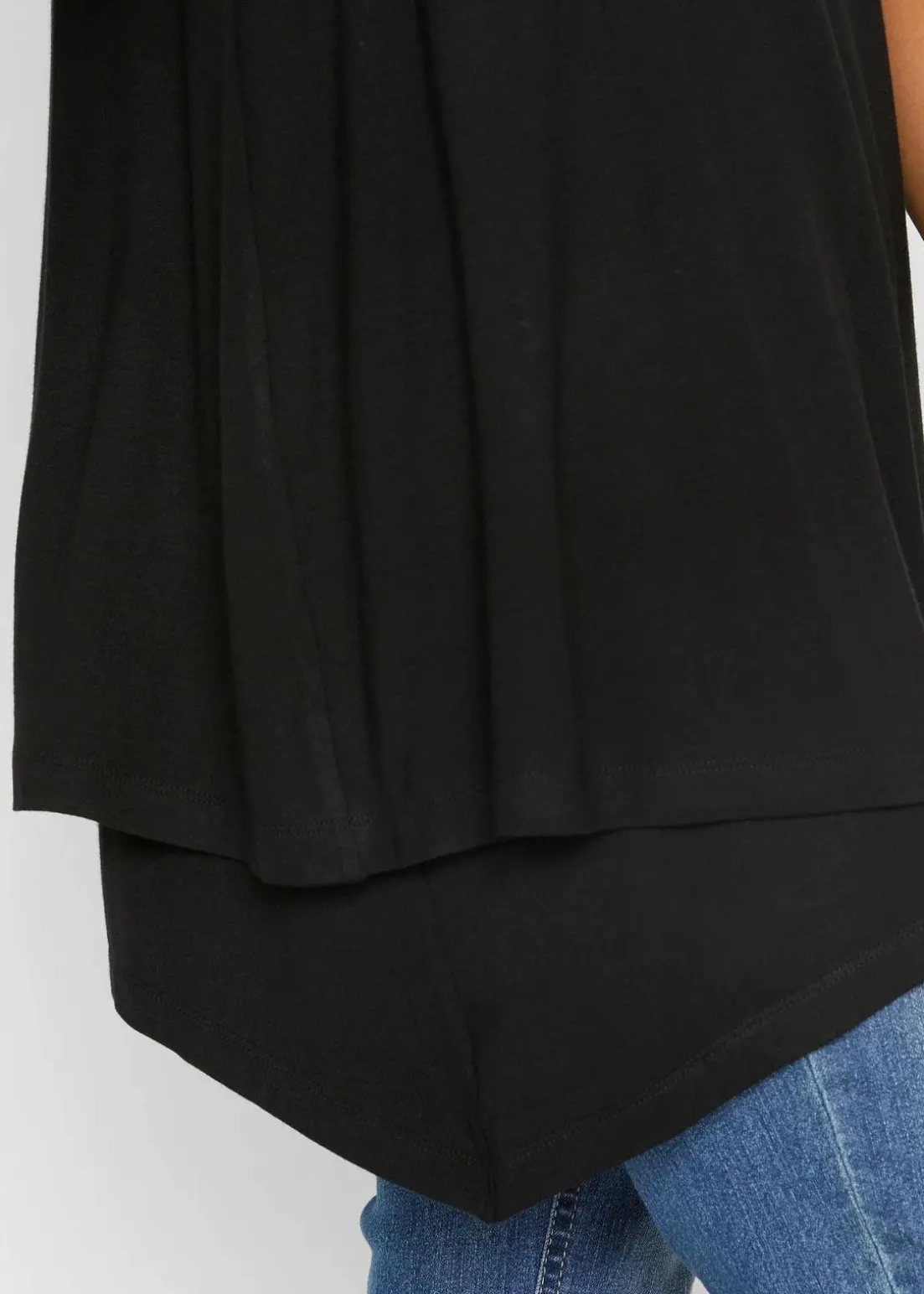 Doppellagiges Long-Top mit V-Ausschnitt und Zipfelsaum, lang geschnitten