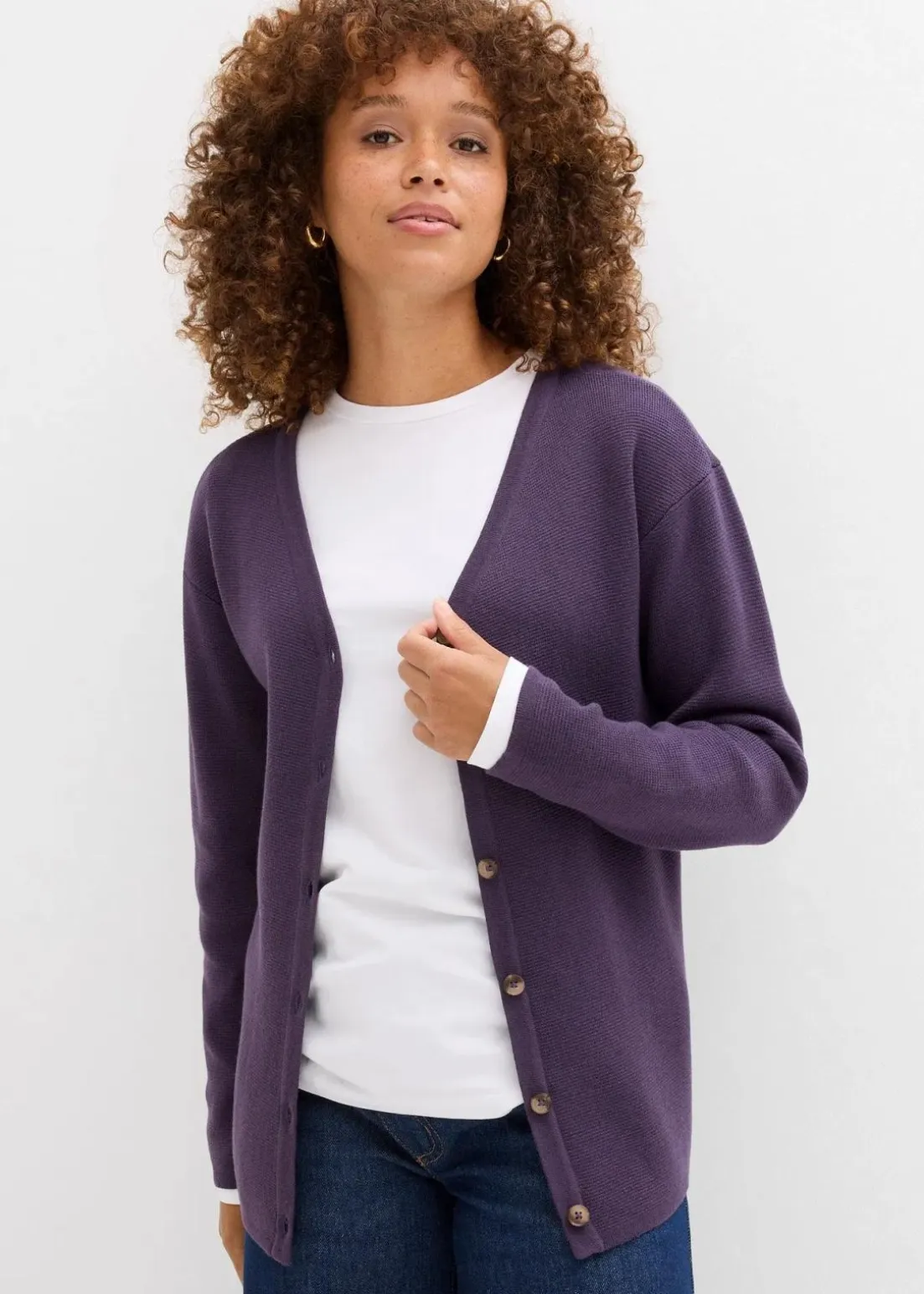 zeitlose Strickjacke aus Milano Strick mit Knöpfen in edler Hornoptik