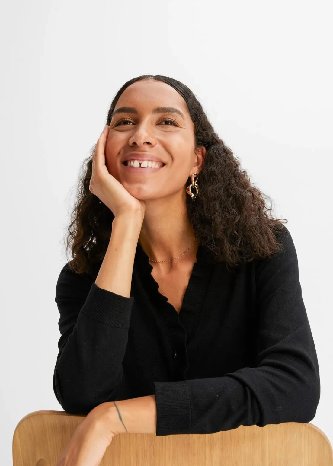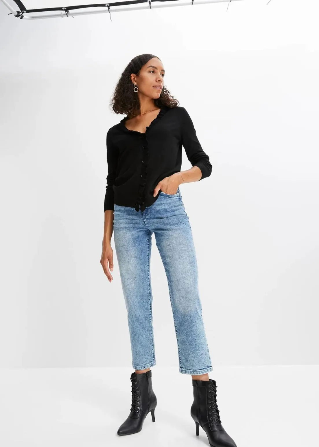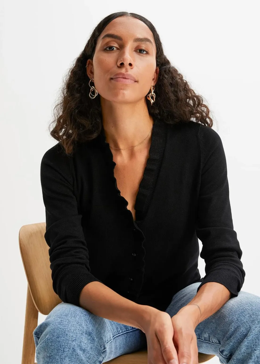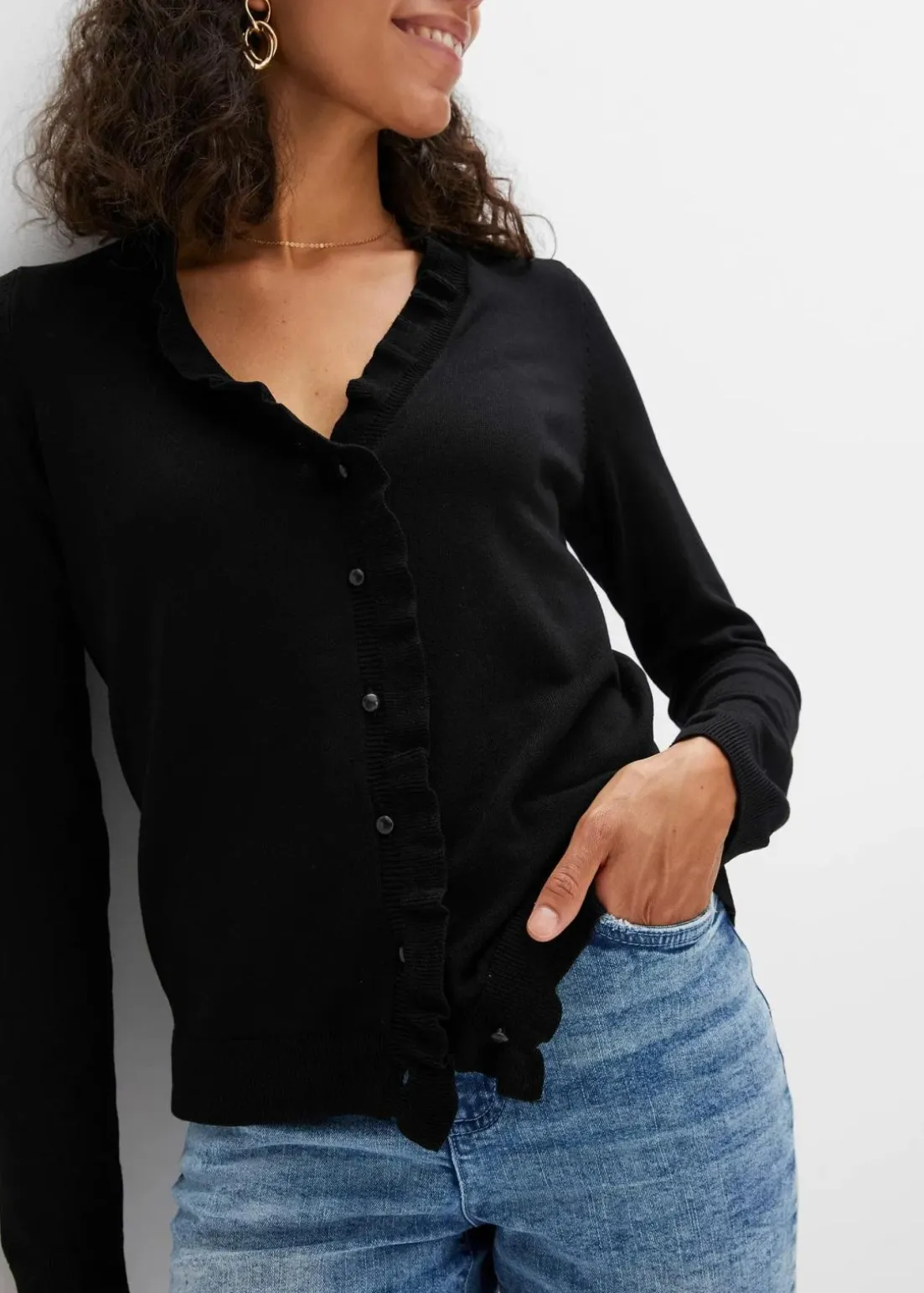 Kuschelige Strickjacke mit verspieltem Rüschenkragen