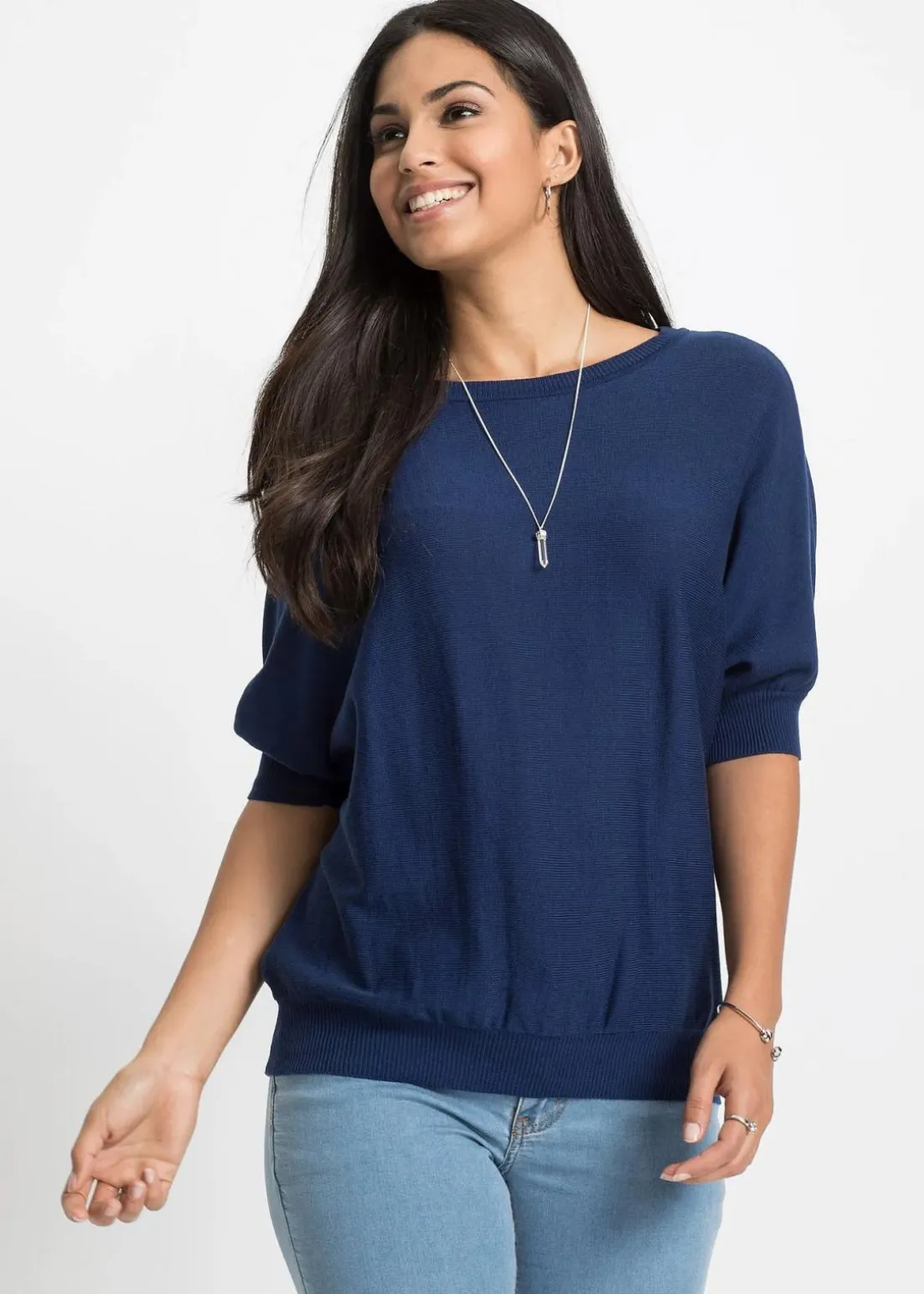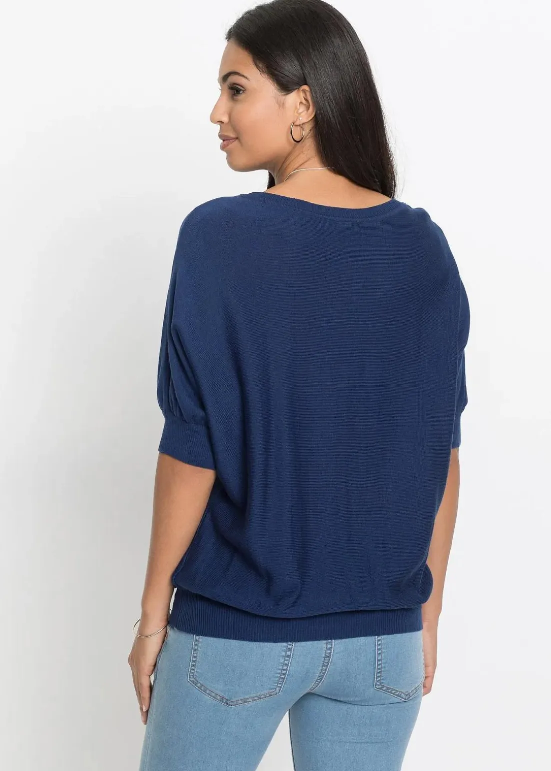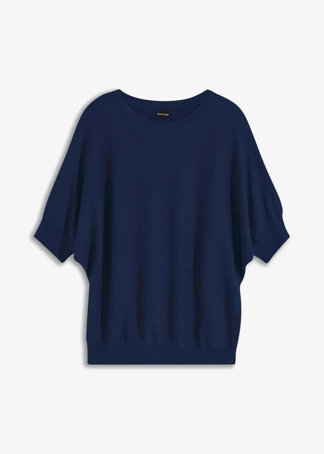 Rundhals-Pullover mit kurzen Fledermausärmeln