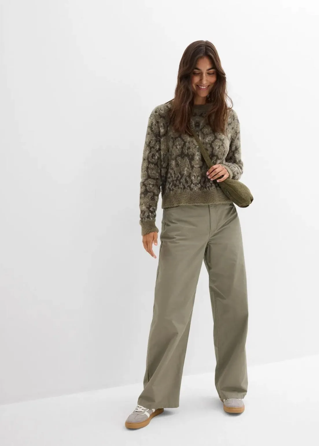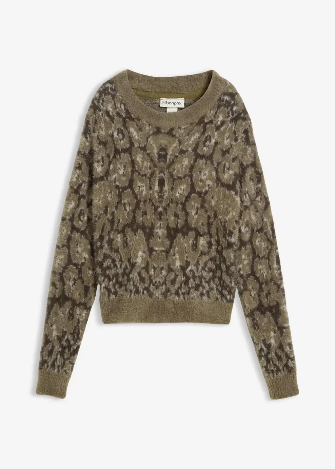 Lässiger Feinstrickpullover aus flauschigem Federgarn
