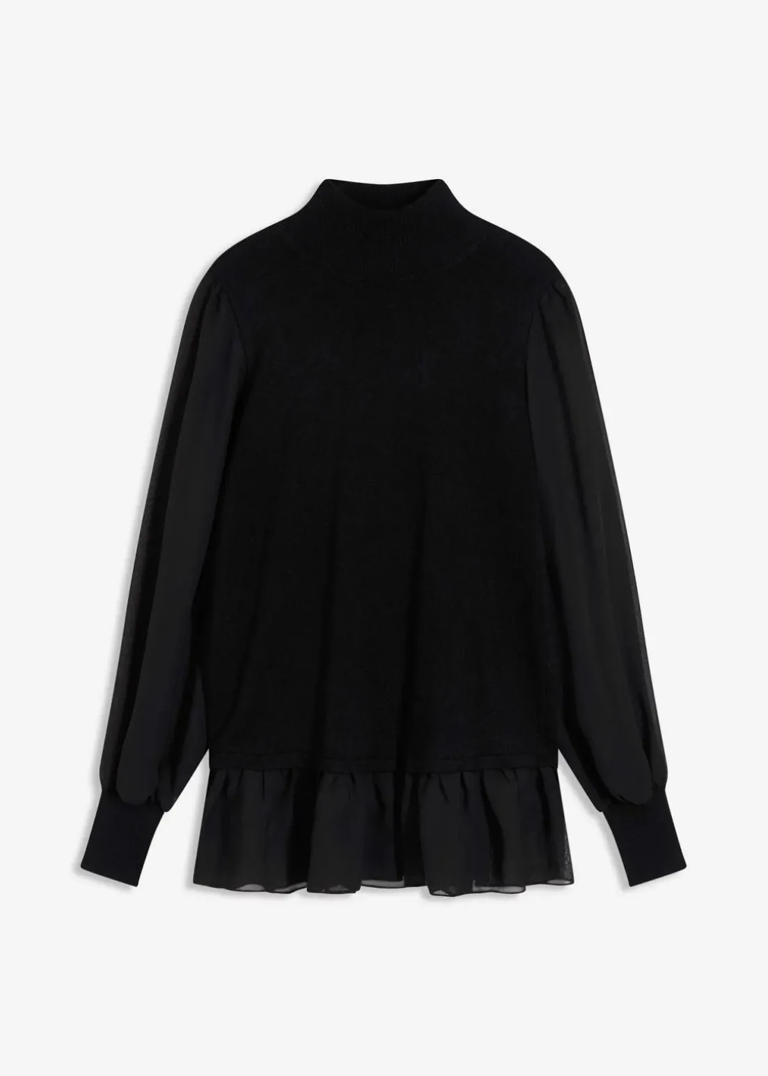 modischer Feinstrickpullover mit Chiffonärmeln und Chiffon-Einsatz am Saum