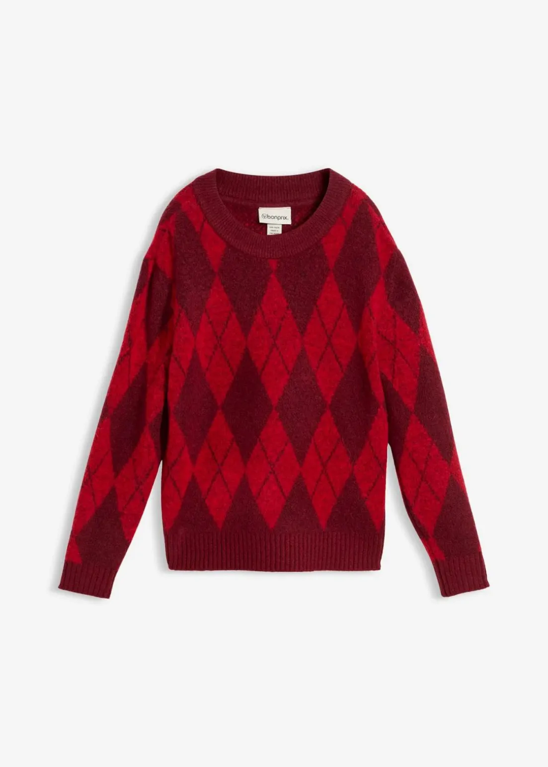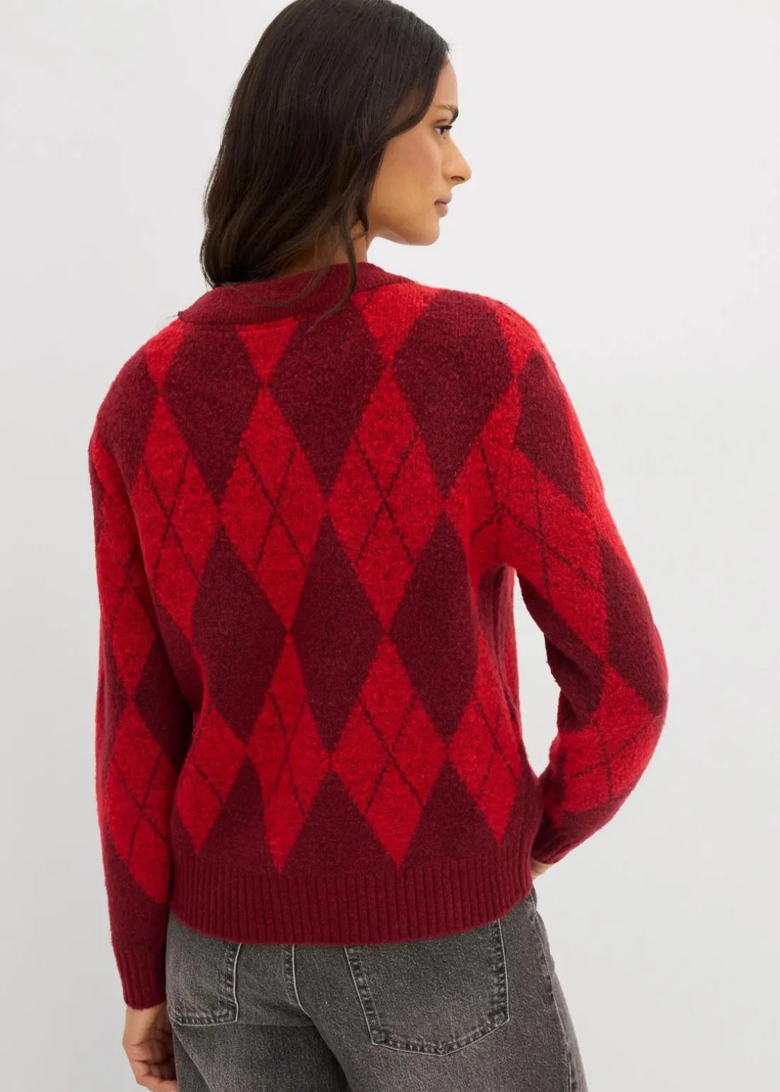 Modischer Strickpullover mit Karomuster und Rundhalsausschnitt