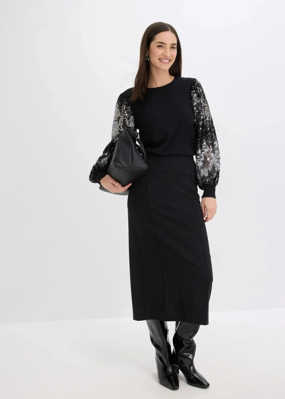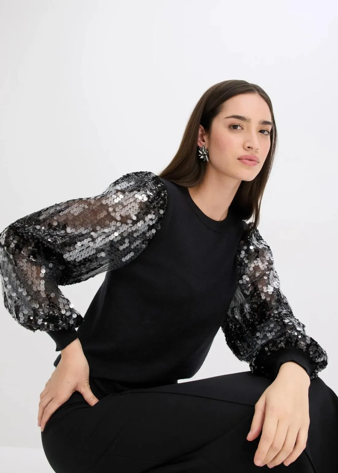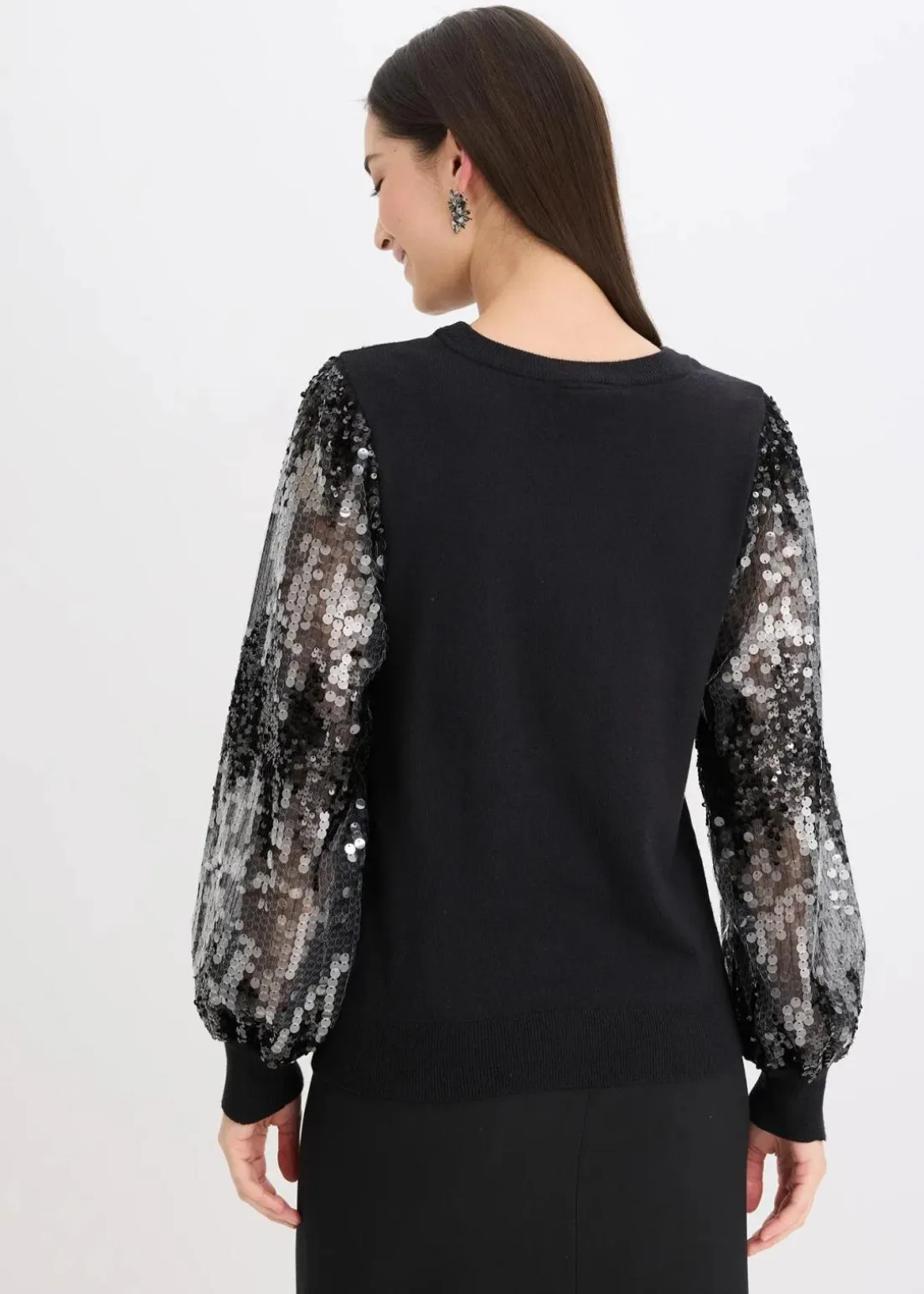 modischer Pullover mit leicht voluminösen Pailletten-Ärmeln