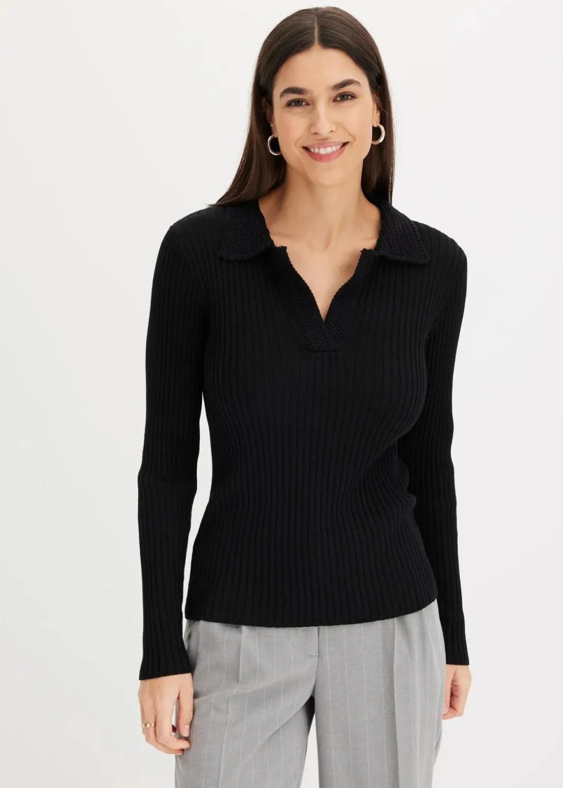 eleganter Polo-Pullover mit schmückendem Kragen