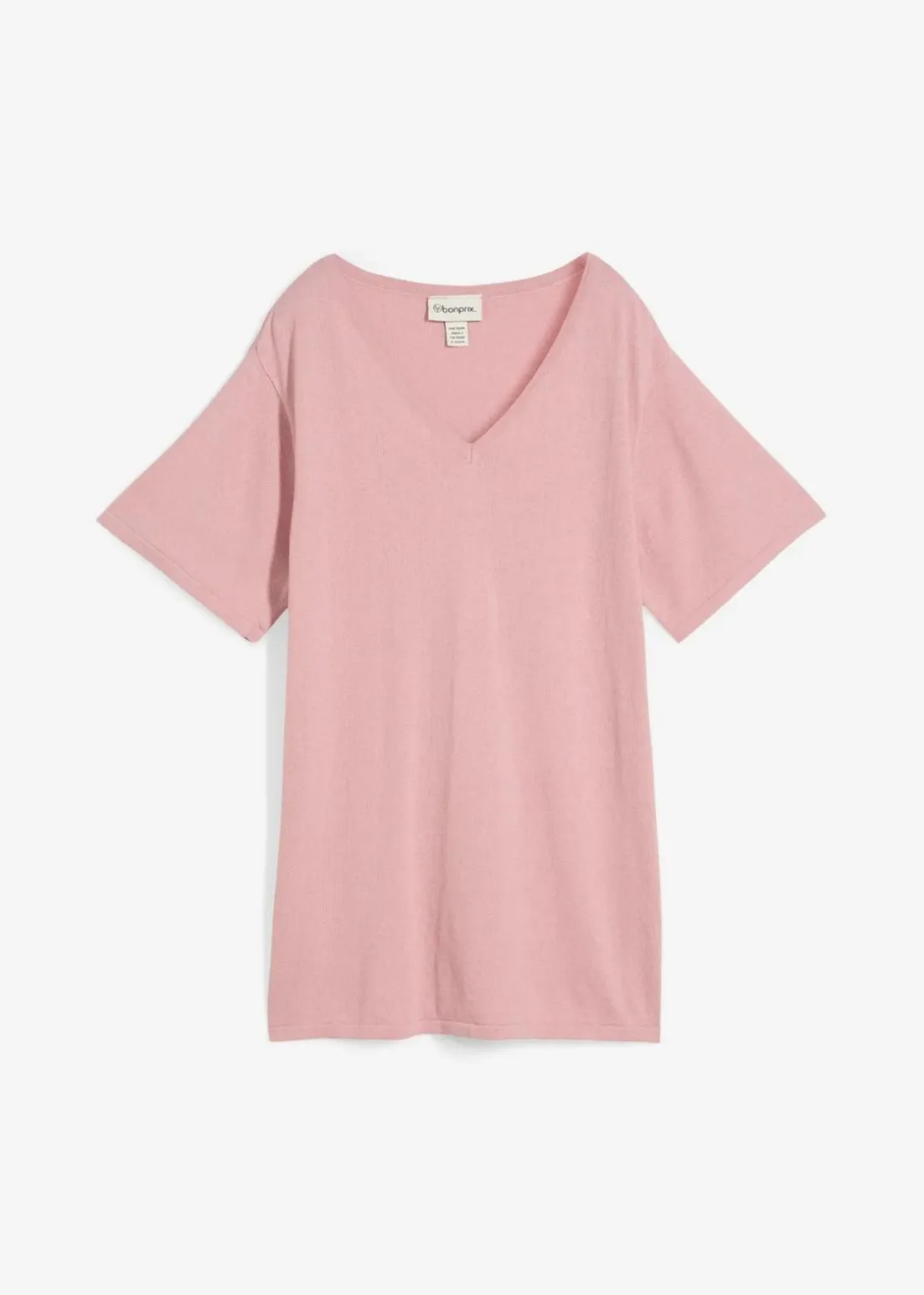 Feinstrick-Shirt aus einer Baumwollmischung. Kurzärmliger Style in weiter Passform V-Ausschnitt und Seitenschlitzen.