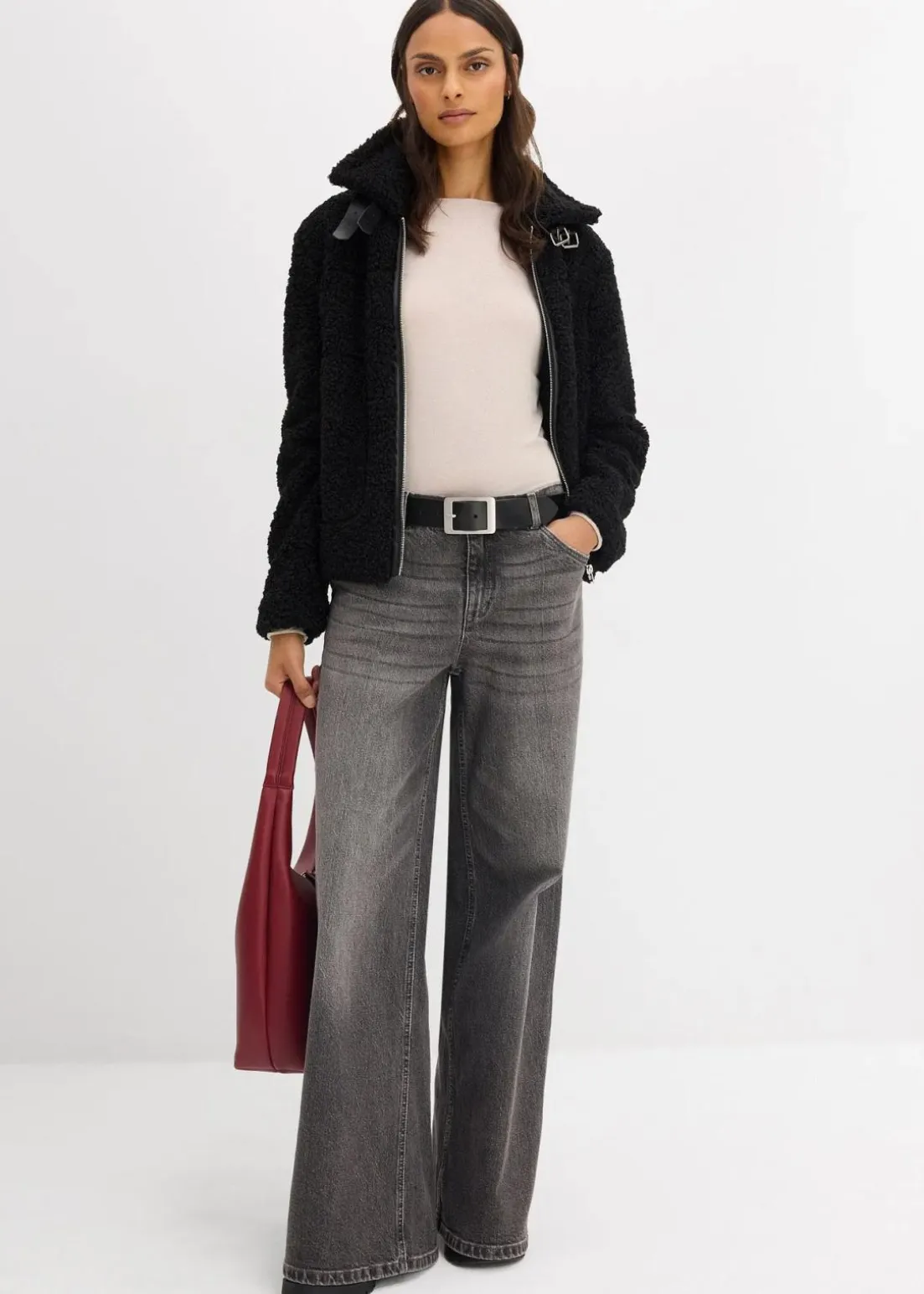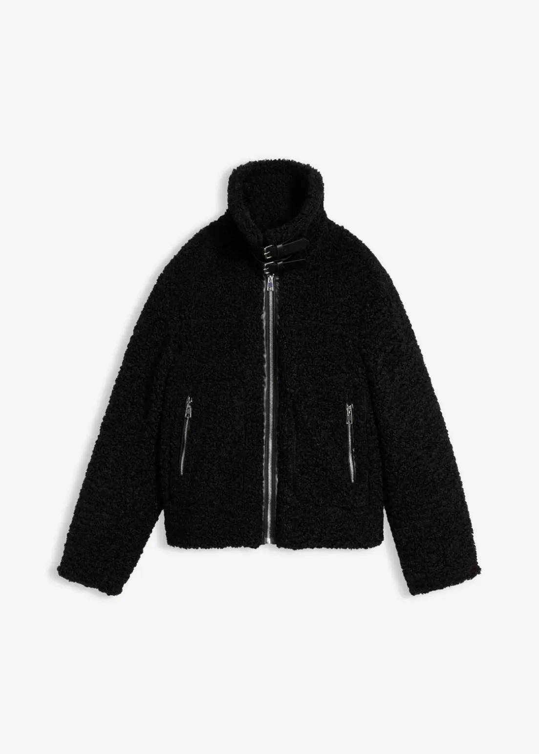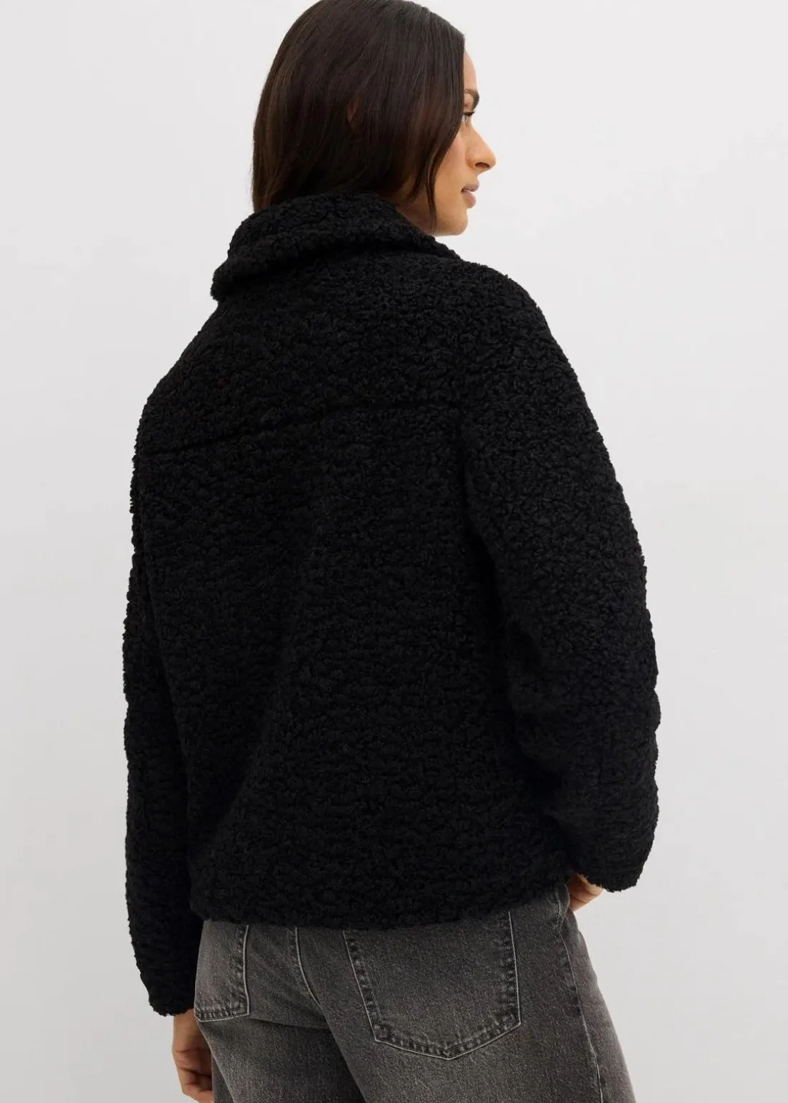 Modische Fellimitat-Jacke aus Teddyfleece und seitlichen Taschen