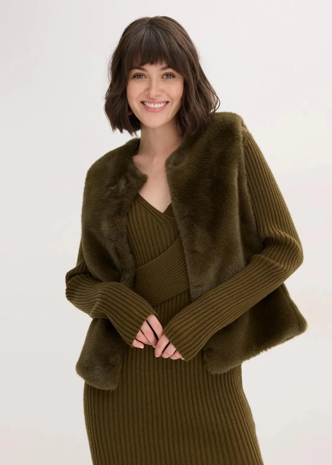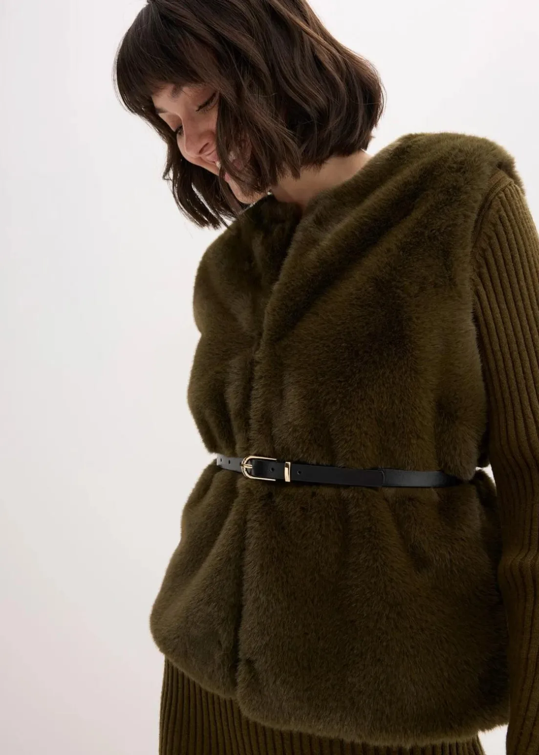 modische Fellimitat-Weste mit Haken- und Ösen-Verschluss vorne