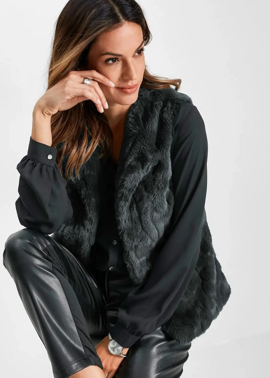 stillvolle Fellimitat-Weste, die schmal geschnitten ist