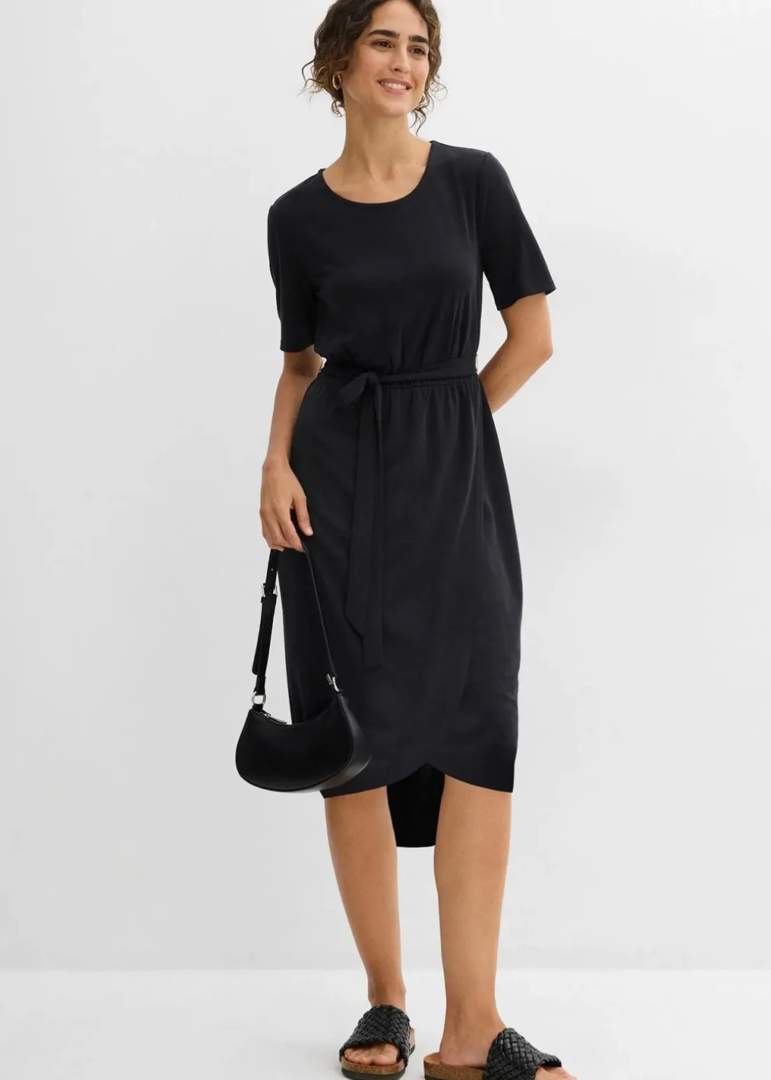 figurbetontes Jerseykleid mit Rundhalsausschnitt und Gürtel