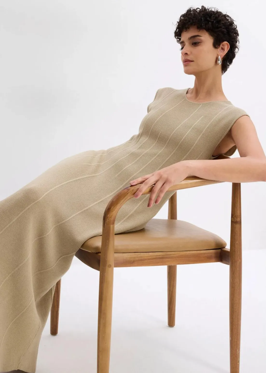 Tailliertes Ärmelloses Strickkleid in Midilänge