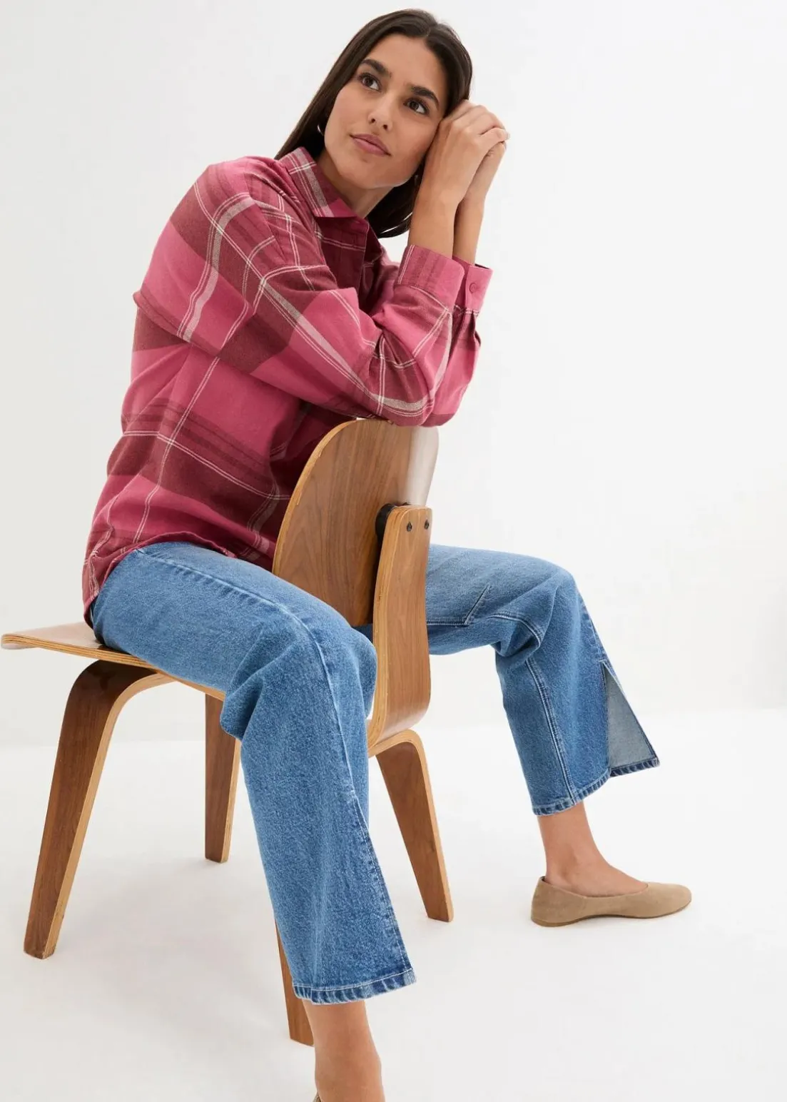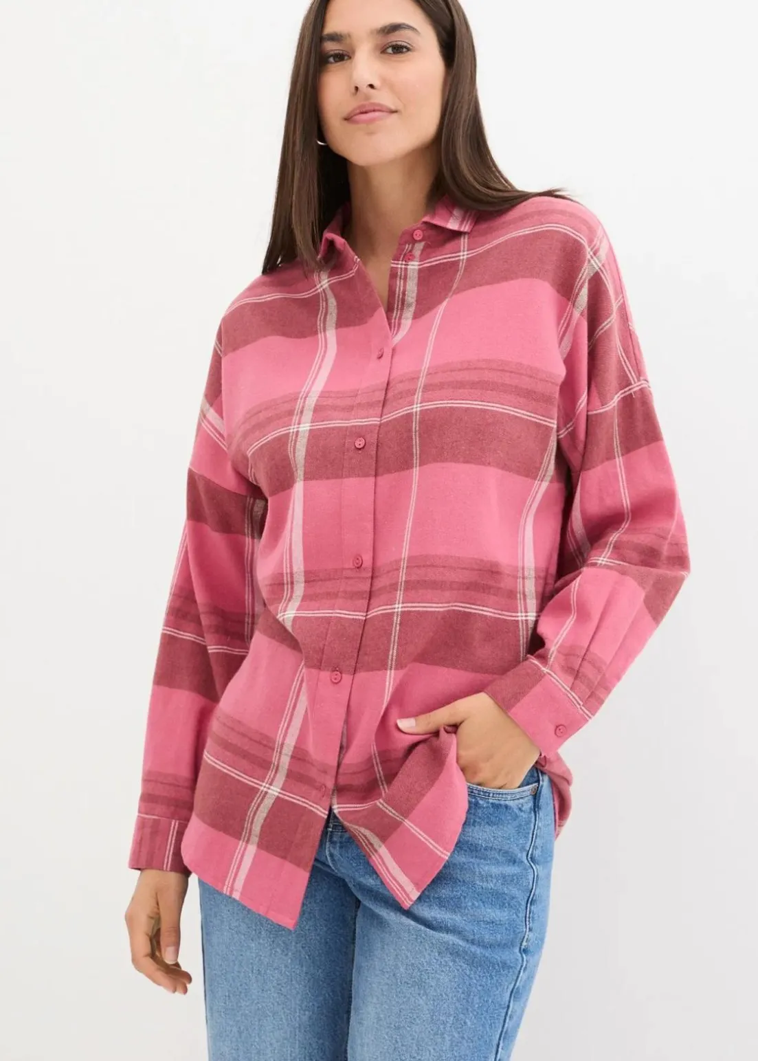 Kariertes Flanellhemd aus reiner Baumwolle mit Knopfleiste