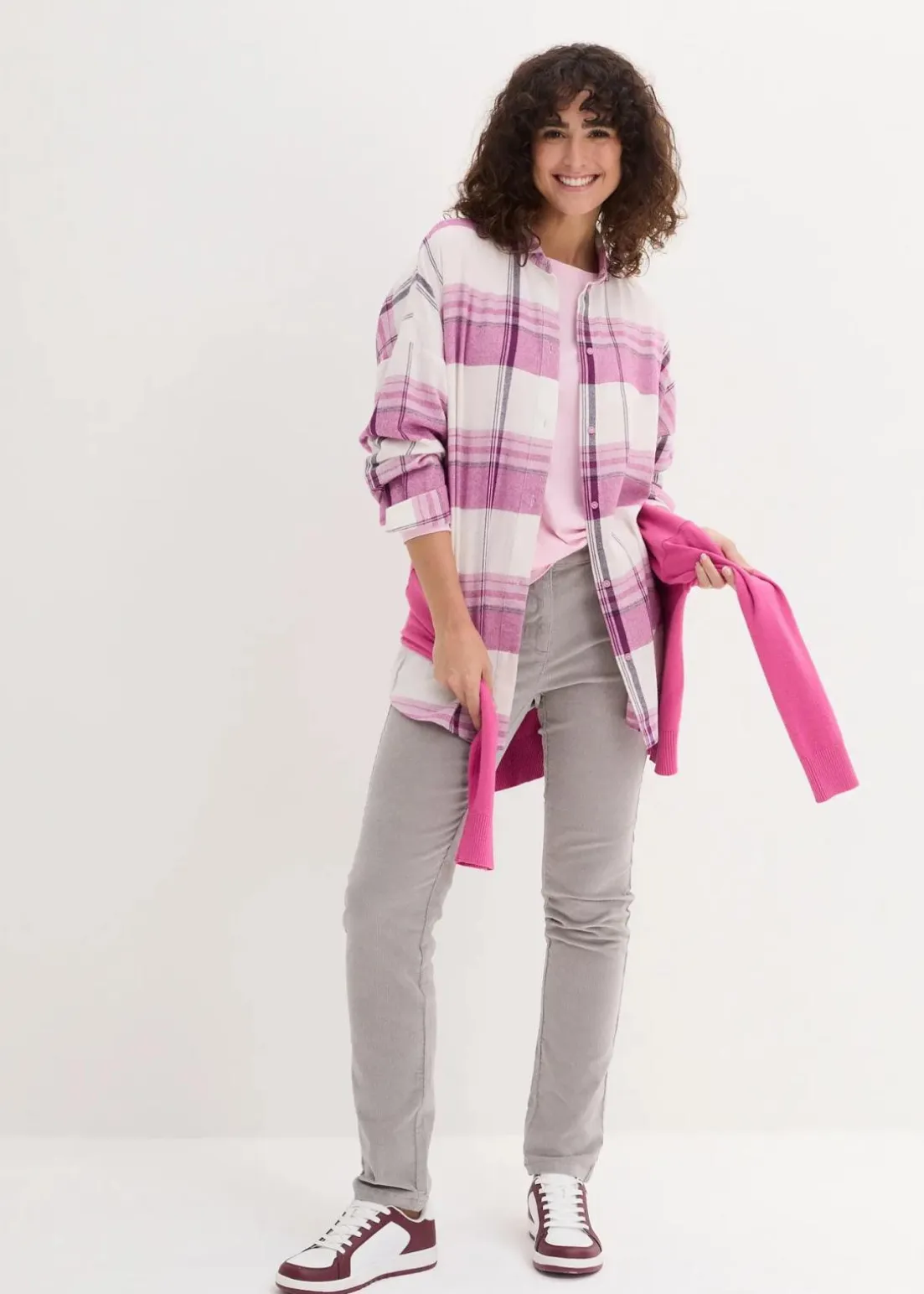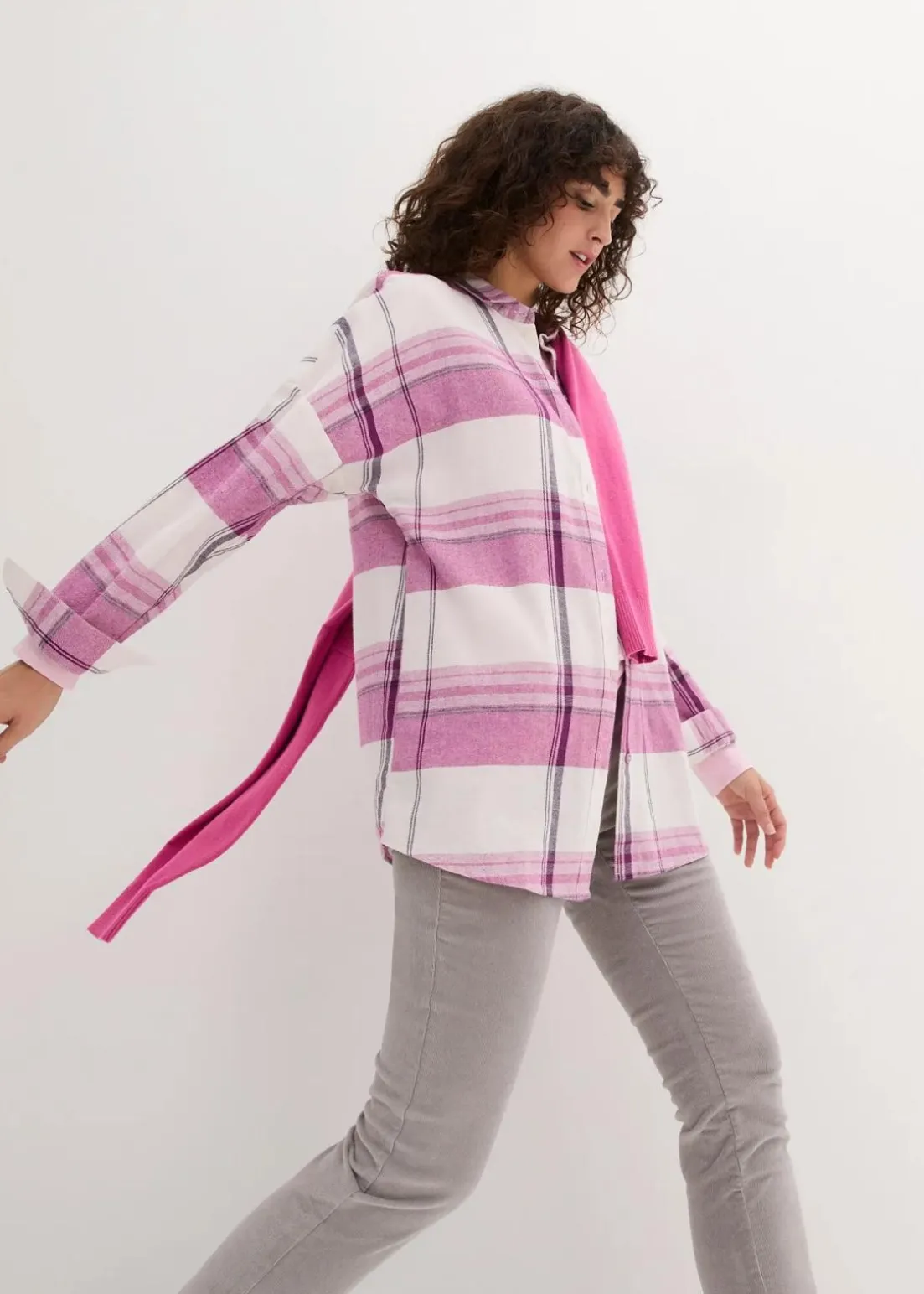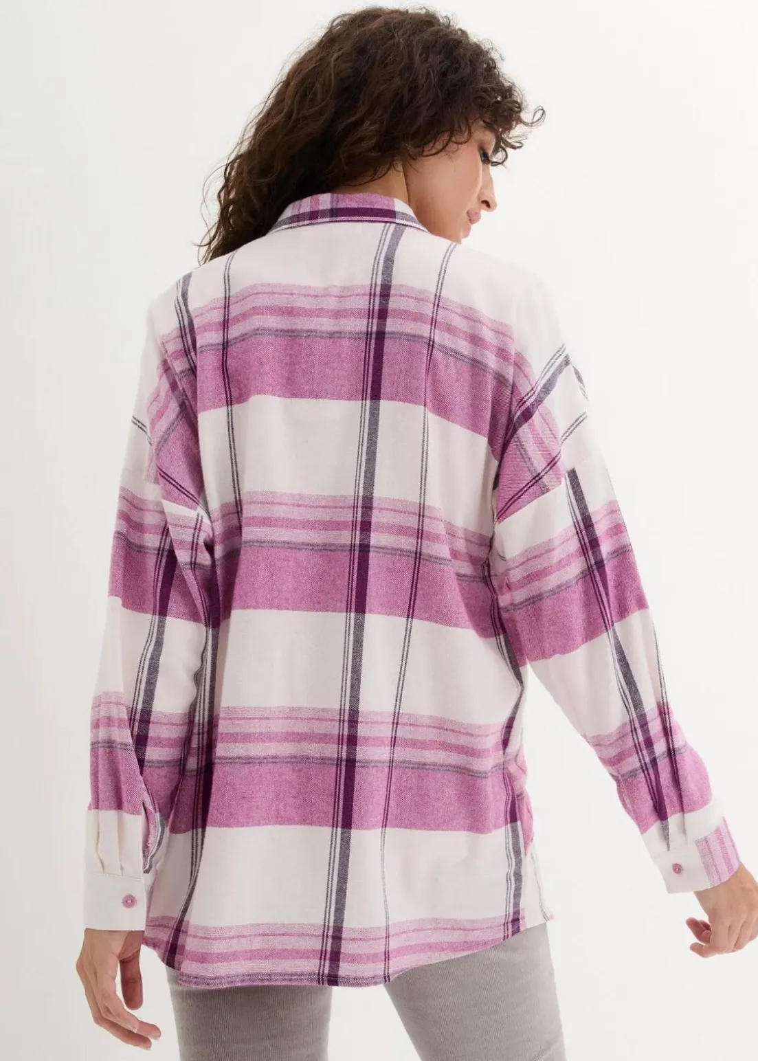 Kariertes Flanellhemd aus reiner Baumwolle mit Knopfleiste