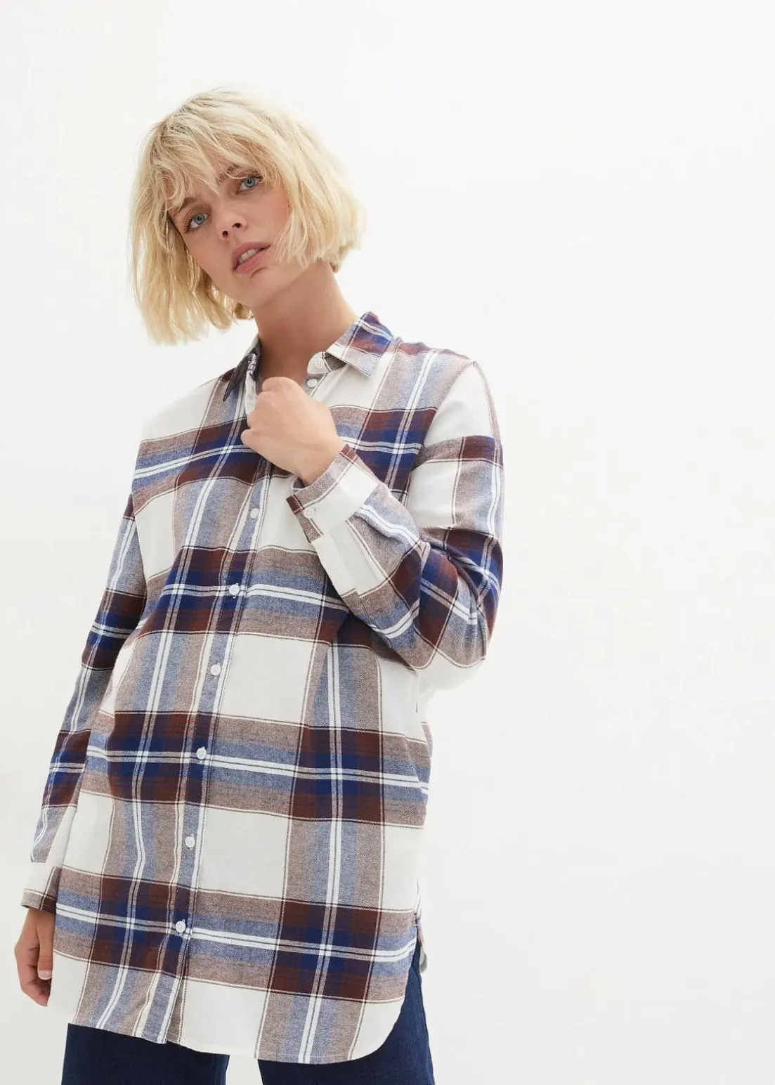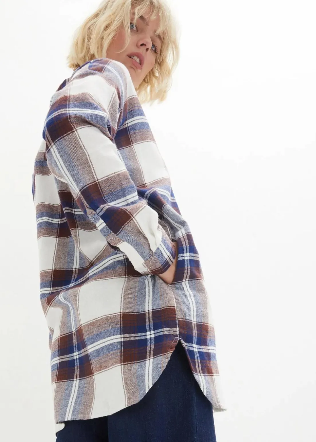 Oversized Flanell-Hemdbluse aus reiner Baumwolle mit Knopfleiste